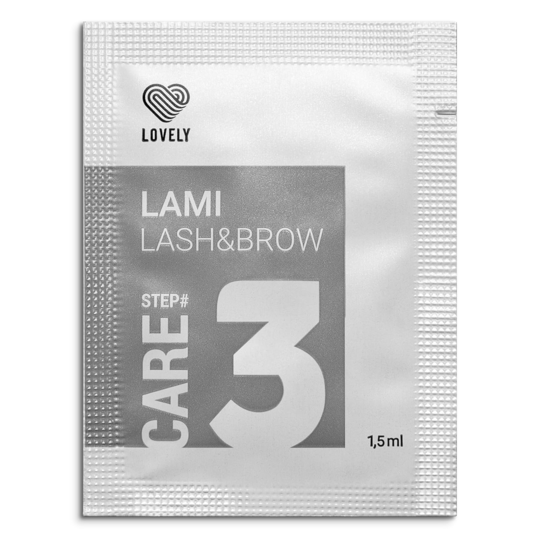 LOVELY LASH BROW lamination for eyelashes and eyebrows (?1 SOFT, ?2 FIX, ?3 CARE) - Available individually or in sets. This safe, balanced formula with silk proteins, vitamins and natural extracts nourishes and strengthens hair for expressive bounce and volume. Up to 30 elongation and 40 more volume. Suitable for unruly hair, it provides reliable and long-lasting hold for up to 8 weeks. Soft No1. Opens the hair structure and prepares for lamination. Fix No2. : stabilizes the new form and closes the disulfide bonds. Care No. 3.: regenerates hair for long-lasting flexibility and curl. Each sachet is perfectly dosed and offers hygienic and airtight disposable packaging for maximum freshness and effectiveness. Ready-to-use sachets save time, minimize over-consumption and are perfect for mobile stylists. The formula is suitable for all hair types and provides a neat and shiny finish. Use for eyelashes: SOFT: apply thinly, 4-10 minutes. Depending on the thickness of the hair, remove the remnants in the direction of growth. Fixation: apply, action time 5-6 min, remove residue. If necessary, color beforehand. Maintenance: apply for maintenance, remove excess. Use for eyebrows: SOFT: apply thinly, 3-7 minutes, cover with film, test and remove the remains. Fix: shape the hair, apply the film, then wipe off the remains. Care: apply, do not rinse. All application details are included in the product SAFETY WARNING Avoid direct contact with eyesVersatile use: Lovely Lami Lash Brow lamination is suitable for all hair types and delivers impressive results on thin to thick eyelashes and eyebrows. Perfect for use in professional salons, mobile stylists, and beauty professionals. Safe and hygienic: Hygienic individual sachets protect the product from impurities and contact with air. This special packaging minimizes the risk of infection and ensures optimal freshness and effectiveness with every use - ideal for professional work. Easy to use: Lovely Lami Lash Brow products come in convenient 1.5 ml sachets that ensure quick and hygienic application. Each portion is ready to use, preventing overuse and saving valuable preparation time for stylists and beauty professionals. [Long-lasting result]: Lovely professional lamination gives your eyelashes and eyebrows a perfect shape and structure that lasts up to 8 weeks. Thanks to natural extracts, momentum and density are maintained throughout without additional maintenance. [LIFTING]: The beautiful Lami Lash Brow lamination lifts lashes and brows thanks to silk proteins and vitamins. Its formula strengthens, extends and gives up to 40 more volume for an intense look that lasts up to 8 weeks. Ideal for professional results in beauty treatments. Plastification LOVELY LASH BROW pour cils et sourcils (?1 SOFT, ?2 FIX, ?3 CARE) - Disponible individuellement ou en lot. Cette formule sûre et équilibrée avec des protéines de soie, des vitamines et des extraits naturels nourrit et renforce les cheveux pour un rebond et un volume expressifs. Jusqu'à 30 d'allongement et 40 de volume en plus. Convient aux cheveux indisciplinés, il permet une fixation fiable et durable jusqu'à 8 semaines. Soft No1. Ouvre la structure des cheveux et prépare la stratification. Fix No2. : stabilise la nouvelle forme et ferme les liaisons disulfures. Care n 3. : régénère les cheveux pour une flexibilité et une courbure durables. Chaque sachet est parfaitement dosé et offre des emballages hygiéniques et hermétiques jetables pour un maximum de fraîcheur et d'efficacité. Les sachets prêts à l'emploi permettent de gagner du temps, de minimiser la surconsommation et sont parfaits pour les stylistes mobiles. La formule convient à tous les types de cheveux et permet une finition soignée et brillante. Utilisation pour les cils : SOFT : appliquer finement, 4-10 minutes. En fonction de l'épaisseur des cheveux, enlevez les restes dans le sens de la croissance. Fixation : appliquer, temps d'action 5-6 min, enlever les résidus. Si nécessaire, colorez au préalable. Entretien : appliquer pour l'entretien, enlever l'excédent. Utilisation pour les sourcils : SOFT : appliquer finement, 3-7 minutes, couvrir avec du film, tester et enlever les restes. Fixez : mettre les cheveux en forme, poser le film, puis essuyer les restes. Entretien : appliquer, ne pas rincer. Tous les détails d'application sont inclus dans le produit AVERTISSEMENT DE SÛRETÉ Évitez tout contact direct avec les yeuxUtilisation polyvalente : la stratification Lovely Lami Lash Brow convient à tous les types de cheveux et donne des résultats impressionnants sur les cils et les sourcils fins à épais. Parfait pour une utilisation en salon professionnel, pour les stylistes mobiles et les professionnels de la beauté. Sûr et hygiénique : les sachets individuels hygiéniques protègent le produit des impuretés et du contact avec l'air. Cet emballage spécial minimise le risque d'infection et garantit une fraîcheur et une efficacité optimales à chaque utilisation - idéal pour les travaux professionnels. Facile à utiliser : les produits Lovely Lami Lash Brow sont livrés dans des sachets pratiques de 1,5 ml qui garantissent une application rapide et hygiénique. Chaque portion est prête à l'emploi, évite la surconsommation et permet d'économiser un temps précieux de préparation pour les stylistes et les professionnels de la beauté. [Résultat longue durée] : la stratification professionnelle Lovely donne à vos cils et sourcils une forme et une structure parfaites qui durent jusqu'à 8 semaines. Grâce aux extraits naturels, l'élan et la densité sont maintenus pendant toute la durée sans entretien supplémentaire. [LIFTING] : la jolie stratification Lami Lash Brow soulève les cils et les sourcils grâce aux protéines de soie et aux vitamines. Sa formule renforce, prolonge et donne jusqu'à 40 de volume en plus pour un look intense qui dure jusqu'à 8 semaines. Idéal pour des résultats professionnels 