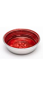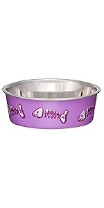 Dishwasher safe (remove rubber ring). Removable rubber base prevents skids, spill and noise. Includes all the benefits of stainless steel. Vet-recommended stainless steel. Stainless steel interior with an attractive poly-resin exterior.