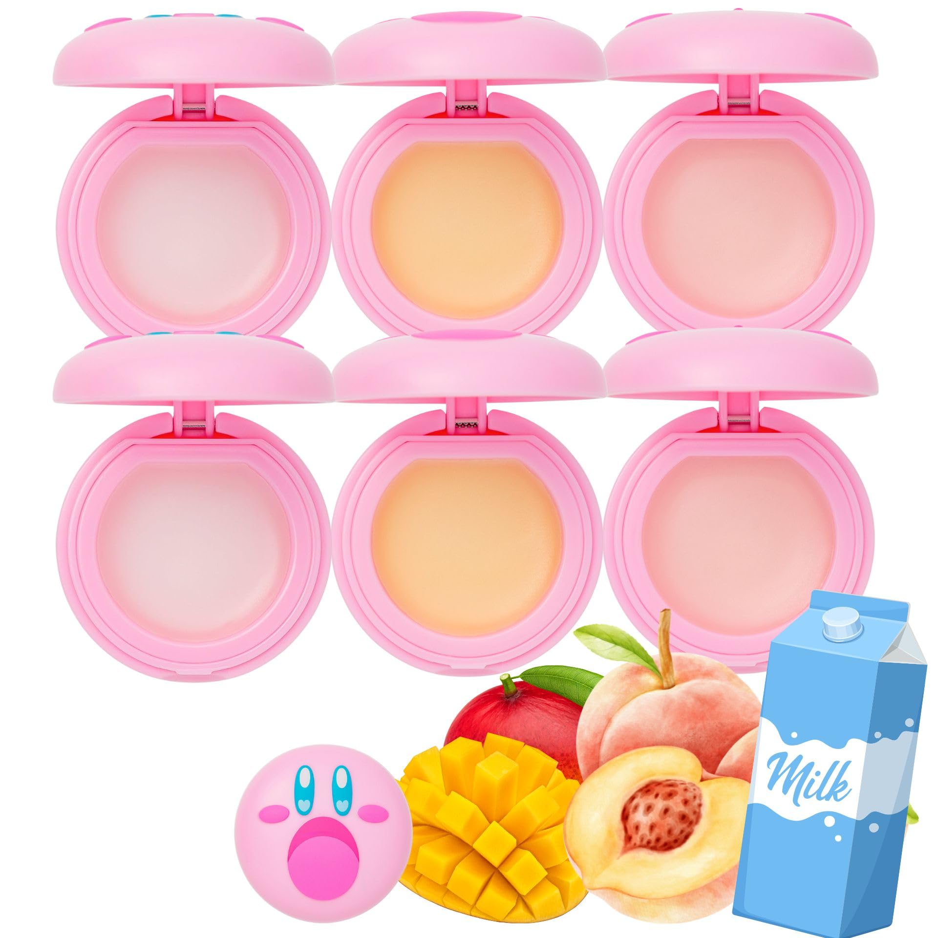 Lovisia Kirby 6 Count Cute Lip Balm for Women Natural Lip Balm for Dry Lips with Vitamin E Honey & Matcha Made in Japan Shea Butter Lip Balm for Mix Scents Milk + Peach + Mango