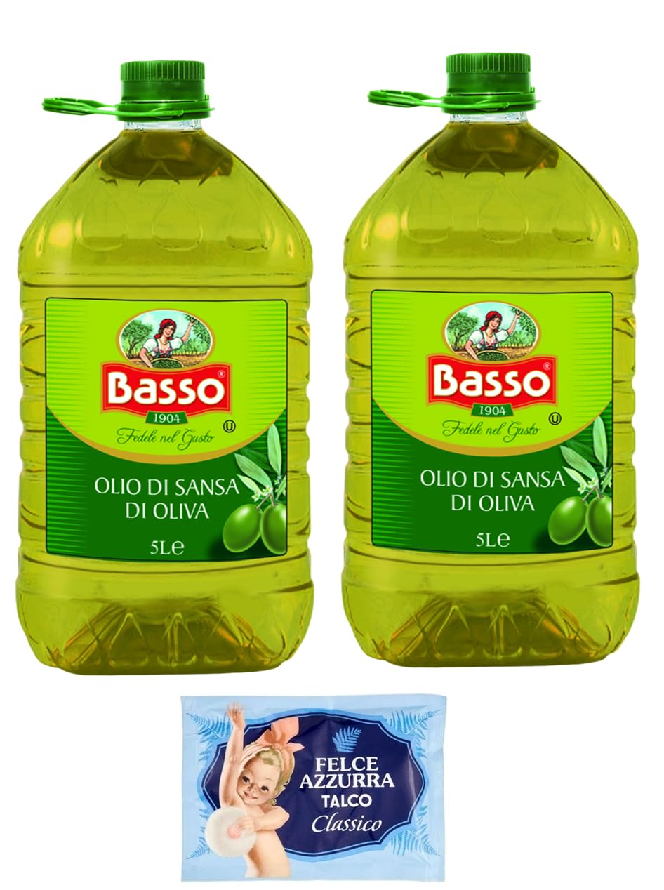 Low Olive Pomace Oil Olive Marc Oil 5 L PET + 1 x Felce Azzurra Talcum Powder 100 g Pack of 2