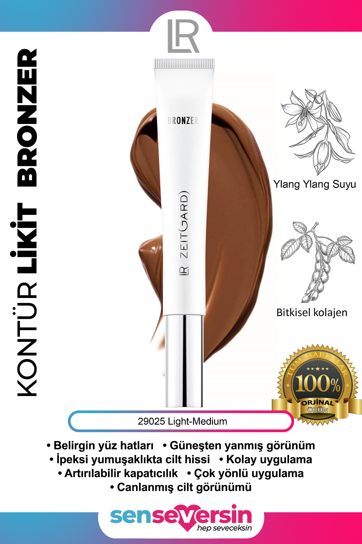 - Cildinize dogal bir isilti kazandiran LR ZEITGARD Signature Kontür Likit Bronzer, 10 ml boyutuyla pratik kullanim sunar.