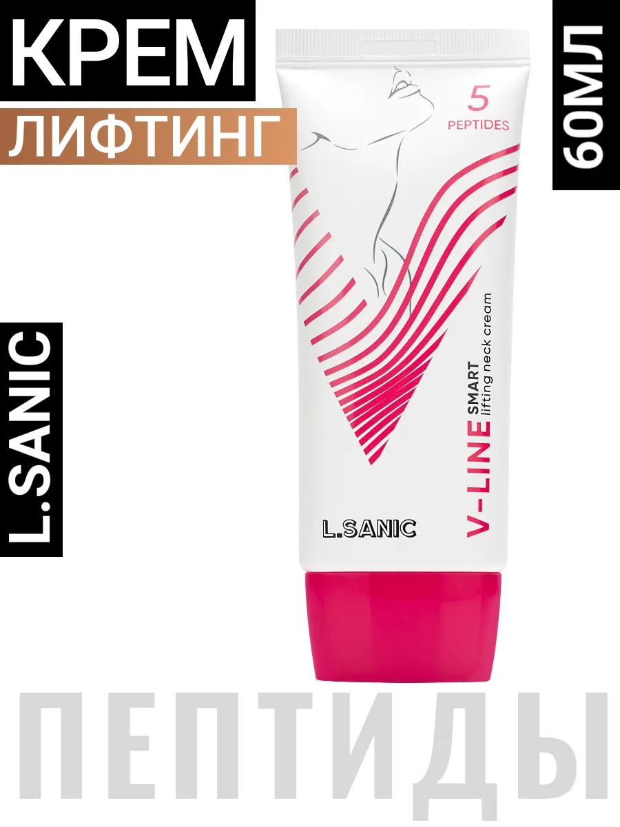 L.Sanic V-Line 5 Peptides Smart Lifting Neck Cream, 60ml Крем-лифтинг пептидный корейский для шеи и коррекции овала лица, 60мл, Представляем вашему вниманию корейский крем-лифтинг пептидный L.SANIC, специально разработанный для ухода за нежной кожей шеи и коррекции овала лица. Этот уникальный продукт сочетает в себе передовые технологии корейской косметологии и натуральные ингредиенты, что делает его идеальным выбором для всех типов кожи — от зрелой до проблемной, от комбинированной до жирной.