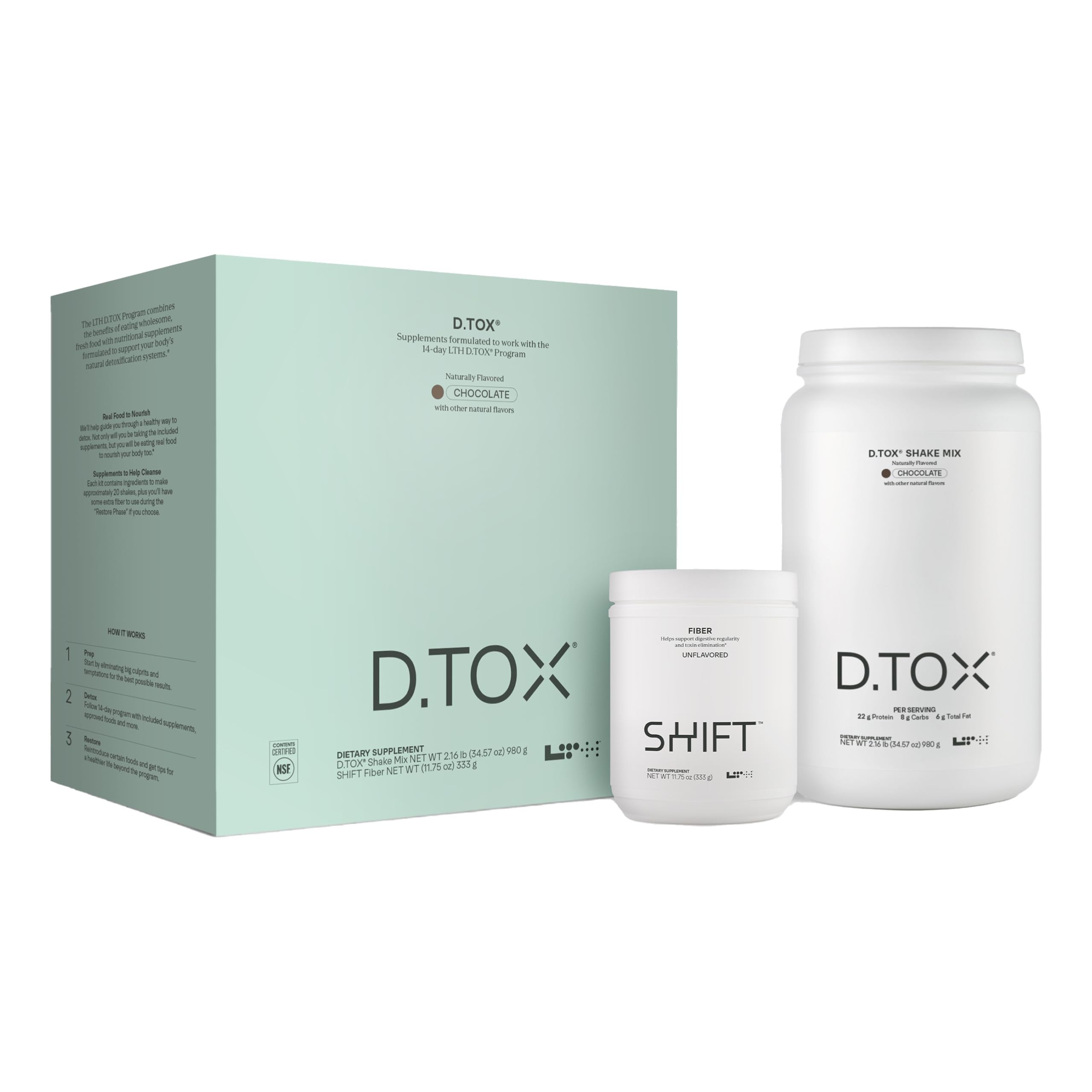 Trusted by Life Time Members: LTH products have long been a best-kept secret—trusted by Life Time enthusiasts and club members, and now finally available to all. Quality Gut Reset Kit: LTH D.TOX is NSF-certified and third-party tested it's also free from aspartame, banned substances, high fructose corn syrup and hydrogenated oils. Plant-Based Nutrition: Our shake mix powder features plant-based protein to support metabolism and detoxification . Detox Shake Fiber: This kit includes a detox shake mix and a prebiotic fiber supplement that aids digestion . Why You'll Love It: The D.TOX Program combines the benefits of eating fresh food with nutritional supplements it also gives access to a digital program for meal planning and habit resets .