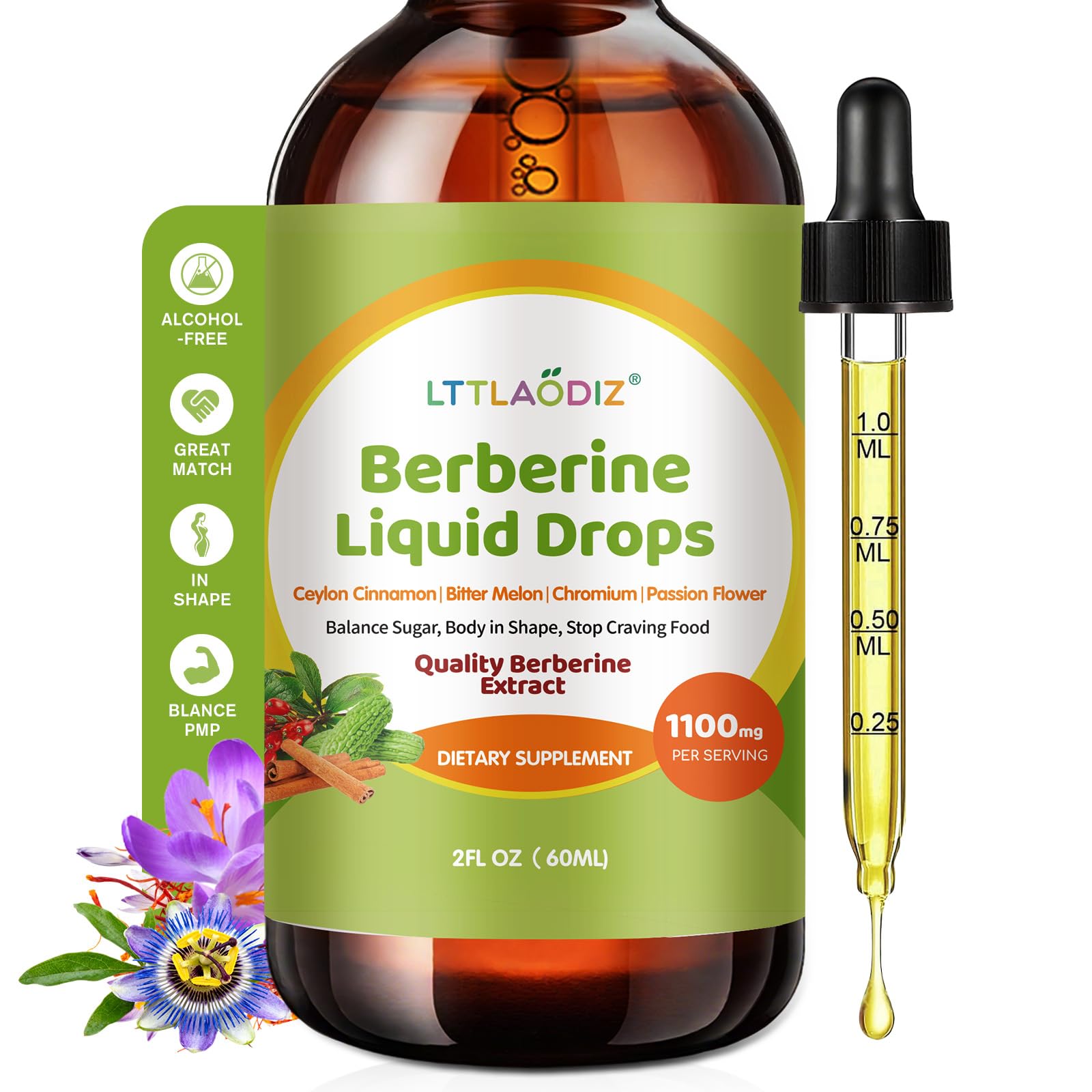 Discover the synergy of nature and tradition in our Berberine Drops with Ceylon Cinnamon. At the heart of this formula is Berberine, thoughtfully paired with premium Ceylon Cinnamon, creating a combination inspired by time-honored herbal use. This blend doesn't stop there—it also includes Bitter Melon, Passionflower, Gymnema Sylvestre, and Fenugreek, botanicals traditionally valued for balance and vitality. To complement these herbs, we've added Chromium, Resveratrol from Japanese Knotweed, and Inulin from Artichoke, providing trace nutrients and plant-based support. To round out the formula, Saffron, Turmeric, Ginger Root, and Black Pepper extract bring warmth, harmony, and enhanced bioavailability. Delivered in a convenient liquid form, these drops are easy to take daily—simply mix into water, juice, or tea. Whether you're looking for a plant-based addition to your wellness routine or exploring traditional botanicals, this carefully designed supplement offers a natural way to support your everyday vitality.Liquid Herbal Formula – Convenient liquid drops make it easy to enjoy your supplement simply mix into water, juice, or tea as part of your daily routine. Botanicals for Balance – Featuring Saffron, Turmeric, Ginger Root, and Black Pepper extract, adding warmth, harmony, and enhanced absorption to the overall formula. Nutrient-Rich Additions – Enriched with Chromium, Resveratrol from Japanese Knotweed, and Inulin from Artichoke, this blend combines plant-based extracts with trace nutrients for holistic support. Broad Herbal Synergy – Includes Bitter Melon, Passionflower, Gymnema Sylvestre, and Fenugreek, botanicals long valued in traditional wellness practices for their role in natural vitality. Berberine Ceylon Cinnamon – A thoughtful pairing of Berberine with Ceylon Cinnamon, crafted to reflect the balance of traditional herbal wisdom and modern wellness needs.