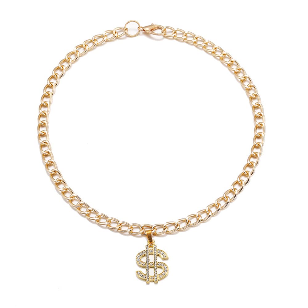 LtuzPet Gold Chain Dog Collar Adjustable Dog Necklace with Crystal Dollar Pendant Pet Jewelry Chain Puppy Pet Accessories S A-S01