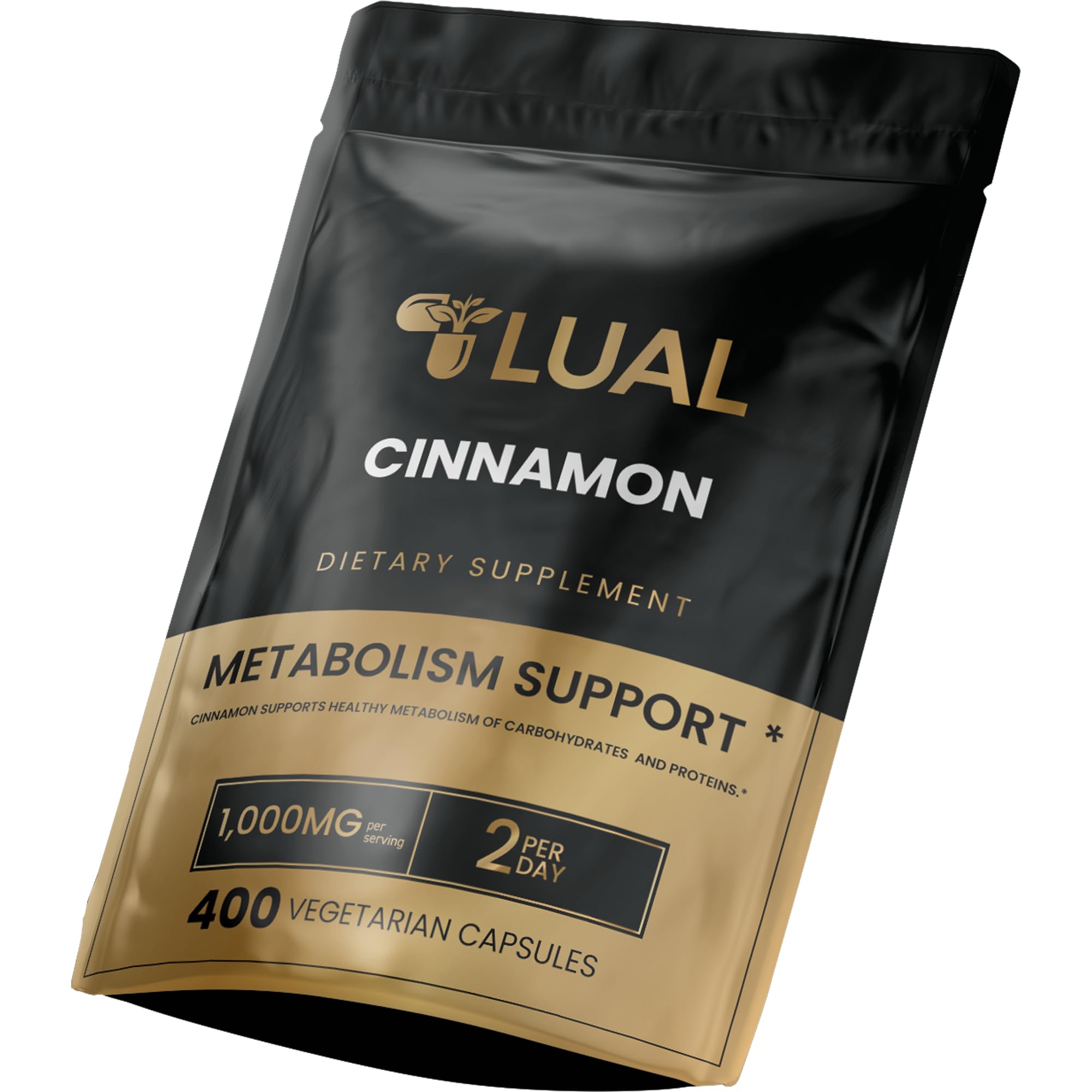 LUAL Cinnamon Supplement 1000mg 400 Vegetarian Capsules Natural Herbal Extract Clean Formula No Sugar or Fillers (Not Ceylon Cinnamon Supplement)