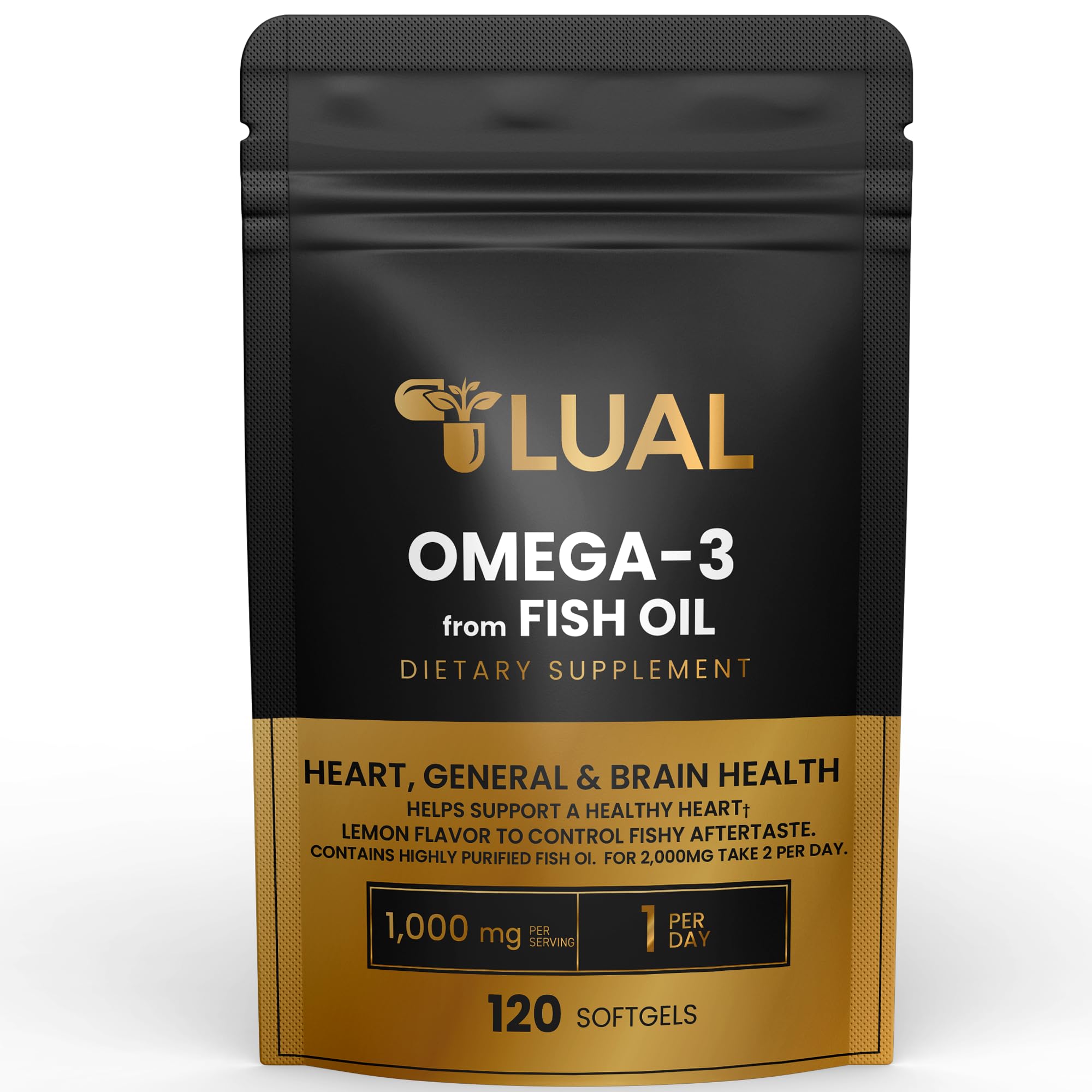 LUAL Omega-3 Fish Oil Softgels 1000mg with EPA and DHA Lemon Flavor Burpless Non-GMO Formula for Heart Brain and Overall Wellness 120 Count
