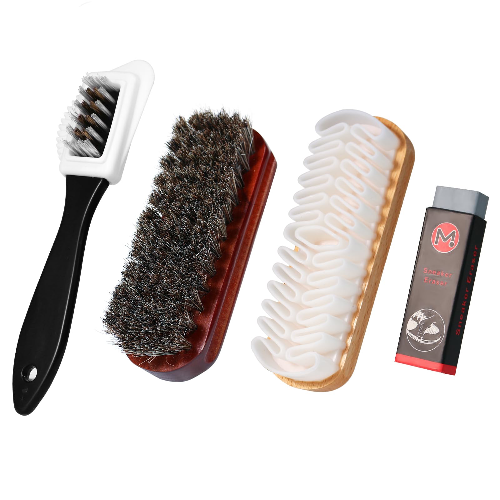 4 PCS Nubuck Suede Cleaner Kit --- With this comprehensive kit, you'll have everything you need to effectively clean and repair your favorite suede shoes and accessories. Our nubuck leather brush kit includes a complete set of four essential cleaning tools: suede brush, 4-sided nubuck leather brush, horsehair brush, and PVC material sneaker eraser. This kit meets all your cleaning needs, ensuring great performance. -Our suede and nubuck brush are made from durable, high-quality materials, ensuring their longevity and effectiveness. Keep your shoes looking shiny and new with this gentle yet effective cleaning tool that won't cause any damage to the color or leather. -The soft, compact bristles of our suede cleaning brush have strong stain removal capabilities, ensuring a thorough and efficient cleaning process. The brush leaves no dead spots and can clean all types of suede or nubuck leather. -The product comes with a cleaning eraser that provides superior cleaning results in just a few simple steps. In daily life, when you need shoe or leather care, you can take this lightweight shoe cleaning brush kit out of your bag. -The suede and nubuck brushes in our kit are suitable for a variety of delicate surface cleaning tasks. Not only are they great for updating and maintaining your suede sneakers, boots, and suede bags, but you can also use them to clean clothes and shoes made of different materials. Specification -Material: Beech wood, raw rubber, copper wire, Pvc,Horsehair -Product Size: Four-Sided Shoe Brush: 15,4*4 cm Beech Wood Brush: 13,2*3,3 cm Eraser: 7,6*2,5 cm Horsehair Shoe Brush: 14*5 cm Color: As the Picture Shows Packing Includes 1x Beech Shoe Brush 1x 4-Sided Suede Brush 1x Horsehair Shoe Brush 1x Eraser?Suitable for Most Suede Shoes?Our suede cleaning brush is suitable for most types of suede shoes, including boots, sneakers, loafers, and more. It can also be used on other suede accessories such as bags and belts. Whether you have light-colored or dark-colored suede, our cleaner kit is versatile enough to handle a wide range of suede materials and colors. ?Get Your Shoes Clean Again?Say goodbye to dirty and stained suede shoes. Our Nubuck Suede Cleaner Kit is here to help you restore the cleanliness and beauty of your suede footwear. Whether it's scuffs, stains, or general dirt buildup, our kit will tackle the toughest cleaning challenges and leave your shoes looking fresh and renewed. ?Satisfactory Cleaning Effect?Nubuck Suede Cleaning Kit includes a cleaning eraser designed to tackle tough stains and provide a deep clean for your suede uppers and uppers. Effectively removes dirt, oil and other stubborn stains from suede shoes. Give your suede items a new look with this eraser. ?Durable & High quality material?Our Shoe Polish Brush are made from horsehair for soft bristles. The boot crepe brush is made of durable yet soft wood and rubber, and the wooden handle provides a comfortable and secure grip. 4-Sided Shoe Brush are made from rubber, copper wire and plastic to ensure convenience, durability and ease of use. ?4 Packs Nubuck Suede Cleaner Kit?Suede Shoe Cleaning Brush kit comes with a complete 4 piece shoe brush set including 1 suede brush, 1 4 sided nubuck brush, 1 horse hair brush and 1 sneaker eraser. With this comprehensive kit, you'll have everything you need to effectively clean and repair your favorite suede shoes and accessories.