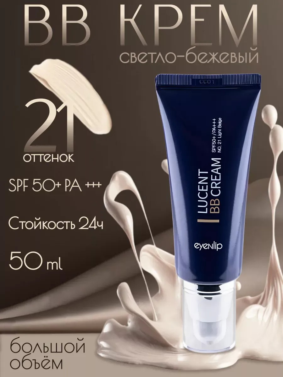 EYENLIP Lucent BB Cream - это лёгкий, увлажняющий ВВ крем с большой функциональностью: идеально корректирует тон кожи; имеет превосходную стойкость; осветляет тусклую текстуру кожи; легко наносится и растушевывается, имеет влажный финиш; стойкое покрытие не скатывается в течении дня. Крем имеет идеальную кроющую способность, маскирует покраснения, скрывает поры создавая идеальное покрытие без липкости. Натуральная розовая основа придает лицу здоровый естественный тон. Основные компоненты: 20 растительных экстрактов увлажняют кожу. Полынь, шпинат и другие овощные ингредиенты дают более комфортное нанесение без раздражений для кожи. Гиалуроновая кислота и аллантоин увлажняю и удерживают влагу внутри. Масло ши питает кожу, делая ее увлажнённой и гладкой.