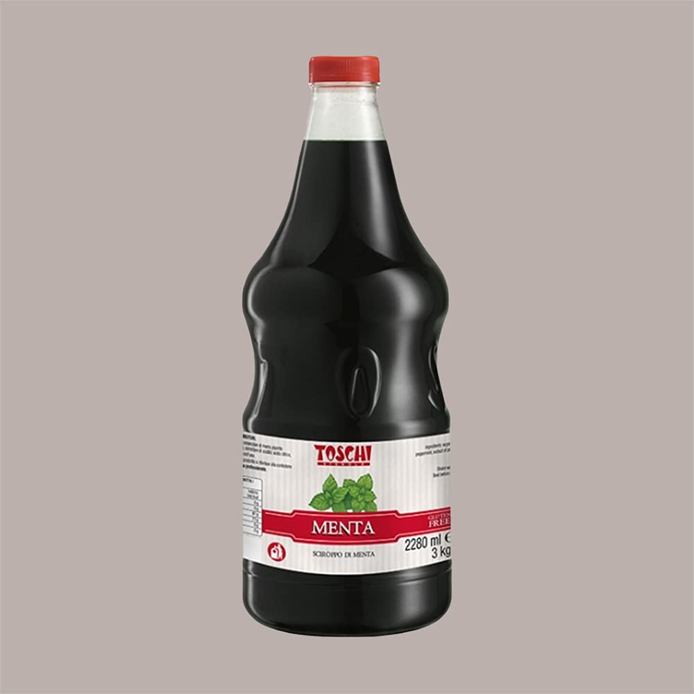 ECO-FRIENDLY GLASS BOTTLE. Shake before use. Mixing ratio: 1 part syrup 6 8 parts water. Weight: 3000 g. Ingredients: Sugar, glucose syrup, water, Piedmont peppermint essential oil, Piedmont peppermint leaf extract, flavorings, acidity regulator: citric acid, color E133. Ideal syrup for customizing ice cream, yogurt, fruit salads, and slushies. High-concentration mint syrup. MINT SYRUP. GLUTEN-FREE.