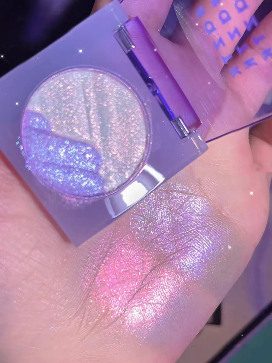 Highlighter for face and body. The texture of the highlighter is dry and slightly mousse. Highlighter with small glitters for a wet-glow effect. Shining, shimmering, light-reflecting shadows. Sparkles for eyes. Glitter shadows for eyes, face, and body for makeup. Shadows with glitter. Glitter for eyes, eyelids, face, and body. Sparkle shadows. Glitter shadows. You can add glitter to body cream or oil, as well as lip oil or gloss. Glitter highlighter. Glitter for eyes, face, and body. Liquid face highlighter with glitter with a brush and applicator. Click on our brand name to find Asian cosmetics, including original highlighters, a contouring palette, a 3-in-1 blush and highlighter, a sculpting highlighter, a liquid cream highlighter, a highlighter palette with glitter, a loose highlighter with glitter, a highlighter stick, a white eyeshadow pencil, and a duochrome highlighter with an applicator.