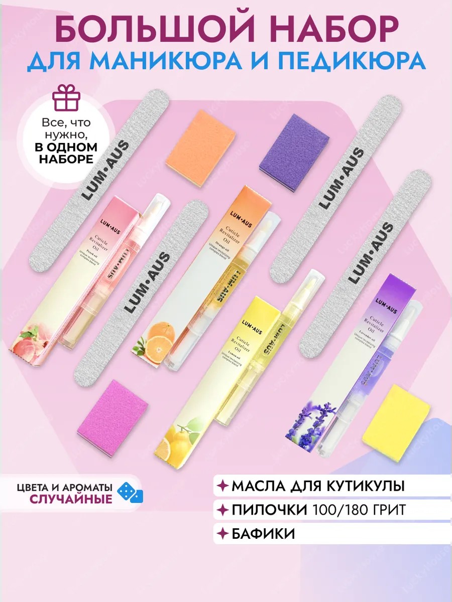 | Комплектация | масло для кутикулы; Баф для ногтей - 4 шт; пилки 4шт; подарочный набор |