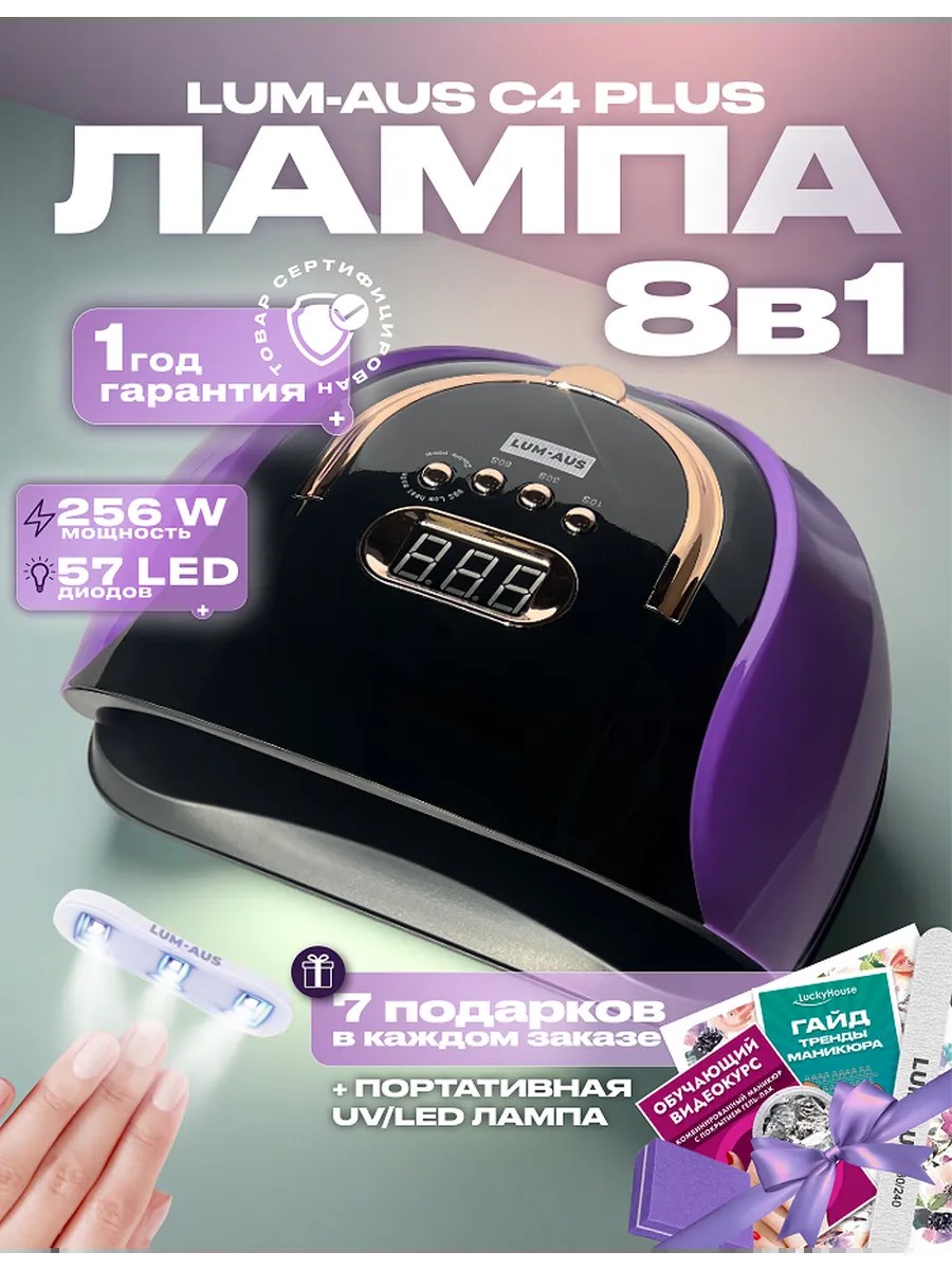 Профессиональная настольная лампа для маникюра и педикюра для сушки гель лака Sun C4 plus 256 W – это идеальный выбор для мастеров nail beauty индустрии. Ультрафиолетовая лампа для ногтей сочетает в себе передовые технологии и высокую мощность, обеспечивая быструю и качественную полимеризацию гель-лаков и других покрытий. Лед с мощностью 256 Вт и 57 LED светодиодами, лампа гарантирует долгий срок службы. Для маникюра используется сенсорный датчик движения и режим низкого нагрева делают использование лампы комфортным и безопасным для кожи и ногтевой пластины. Лампа для маникюра профессиональная оснащена таймером на 10, 30 и 60 секунд, что позволяет точно контролировать время сушки. Ультрафиолетовый фонарик и съемное дно упрощает процесс дезинфекции, обеспечивая для маникюра гигиеничность рабочего места. В комплекте идет ультрафиолетовый мини фонарик для маникюра, эта led лампа станет отличным дополнением к вашему набору для ногтей. Также в комплекте маникюрный и педикюрный набор профессиональный, наклейки для ногтей, пилка, баф. Low heat сушилка это маникюр s-leader. Техника функциональна и компактна, что делает её незаменимой в любом салоне или домашнем использовании с мини столиком. Лампа для ногтей Sun C4 plus – это не просто инструмент, а надежный помощник в создании идеального маникюра и педикюра. Лампа подходит для всех типов ногтей благодаря технологии двойного спектра излучения UV и LED. В нашем магазине вы найдете все для маникюра, включая различные модели ламп и аксессуары: sun, сушилки, наборы для педикюра. Подарите себе и близким профессиональный уход за ногтями и он будет радовать долгие годы. Машинка – не только качество и надежность, но и стильный дизайн, который украсит любое рабочее место. Лампа выполнит маникюр, наращивание, просушит любой материал, гель, выполните ремонт с мощной nail лампочкой. Уф лампа для смолы отличный подарок для девушек на любой праздник и День Рождения. С диодной лампой Sun C4 plus ваш маникюр будет на высоте.