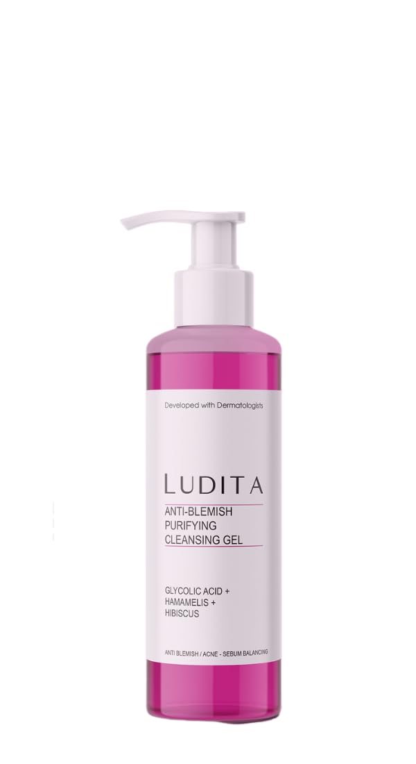 Transform your skincare routine with LUDITA's Anti-Blemish Purifying Cleansing Gel, a powerful yet gentle facial cleanser designed to combat blemishes while maintaining skin's natural balance. This pink-hued, 200ml gel cleanser combines glycolic acid and hamamelis with hibiscus to create an effective purifying formula. The lightweight gel texture glides smoothly across the skin, effectively removing impurities, excess oil, and daily buildup without stripping the skin of its essential moisture. Perfect for those seeking a thorough cleanse that helps manage breakout-prone skin, this cleanser leaves your complexion feeling fresh, clean, and balanced. The convenient pump dispenser ensures precise application, making it an ideal addition to both morning and evening skincare routines. Regular use helps maintain clear, refreshed skin while supporting overall skin health.