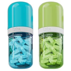 SIMPLE APPLICATION: Just chew one tablet, brush with a wet toothbrush for 2 minutes, and rinse - convenient tablet form eliminates traditional toothpaste hassle while maintaining effective oral hygiene. COMPACT AND TRAVEL-FRIENDLY: Portable containers make these tablets perfect for business trips, vacations, camping, or gym bags - no messy toothpaste tubes to worry about during travel. LONG-LASTING FRESH BREATH: Fluoride-free chewable tablets deliver 12-hour fresh breath protection while gently removing stains for visible teeth whitening results in just 7 days. DUAL FLAVOR VARIETY PACK: This mixed pack includes 35 tablets each of refreshing Ocean Mint and floral Jasmine Longjing flavors, providing 70 tablets total for varied daily brushing experiences. PROBIOTIC FORMULA WITH PEARL POWDER: Luha dental cleaning tablets feature an upgraded 3.0 formula with lyophilization technology, combining probiotics and pearl powder for effective oral care that's 99.9 antibacterial.