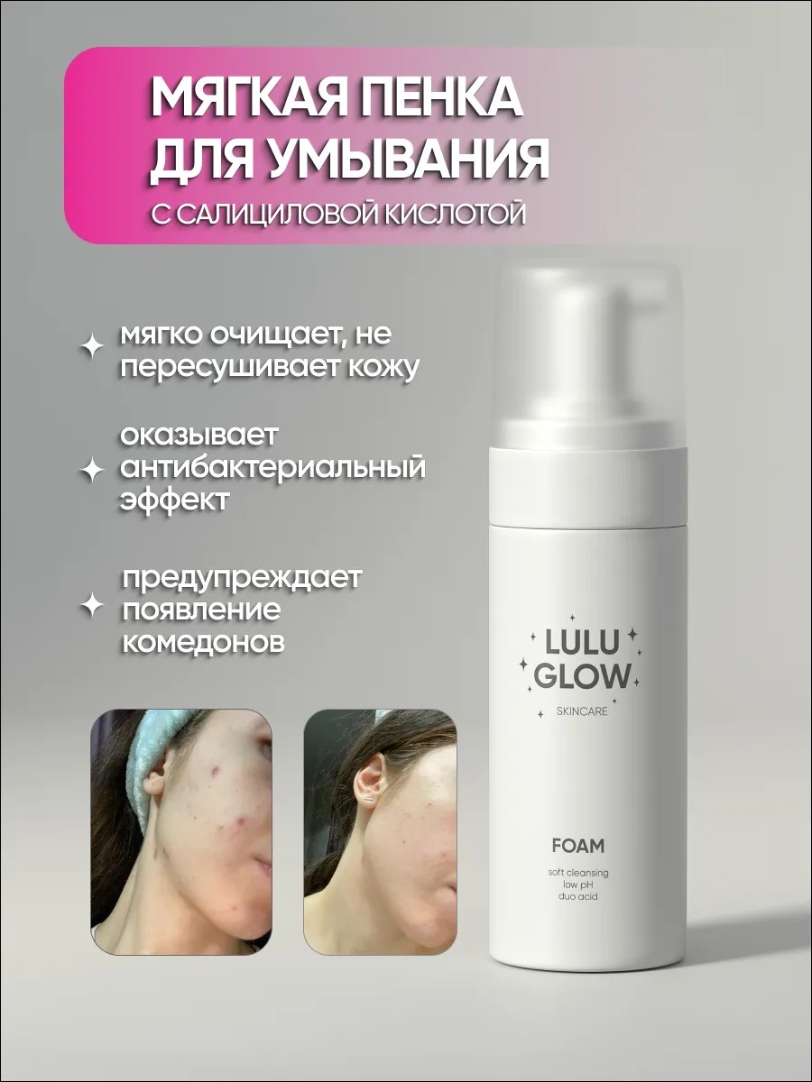 Подарите своей коже профессиональный уход с пенкой для умывания лица от прыщей Lulu Glow – и пусть каждый вечер станет моментом красоты и восстановления, свободным от несовершенств!