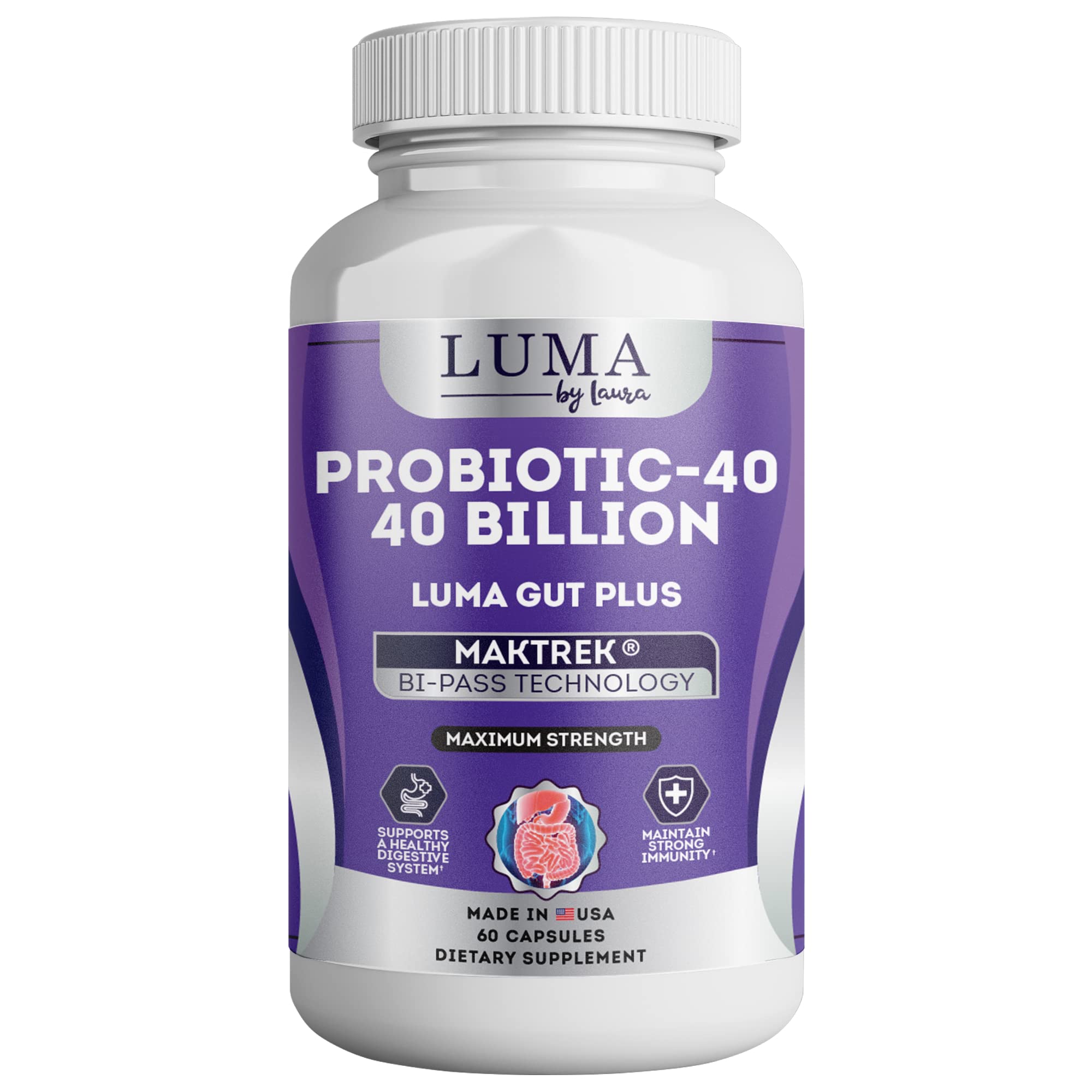 Luma By Laura Adult Probiotics 40 Billion CFU for Stomach Acid Resistant - Maximum Potency for Gut Health & Immune Support - No Dairy Gluten Wheat Yeast - 60 Veggie Capsules