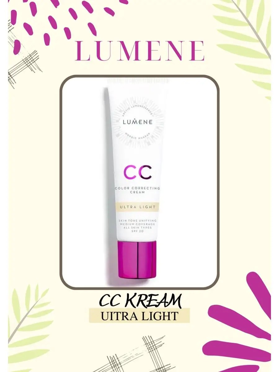 **СС крем Люмене (CC cream LUMENE) обладает воздушной легкой текстурой, ложится на лицо равномерным слоем, подстраивается под естественный тон кожи.Увлажняющий тональный для комбинированной кожи не забивает поры,скрывает пигментные пятна.Тональный крем на водной основе обеспечивает защиту от солнца благодаря SPF20. CC-крем для лица универсальное тональное средство по уходу за лицом не сушит кожу,отлично наносится и распределяется, макияж держится весь день.Тоналка для жирной кожи включает гиалуроновую кислоту. Тональник стойко держится весь день. Тональная основа идеально подходит для всех типов кожи даже проблемной кожи лица а также для сухой кожи**.Таналка придает лицу здоровый и ровный оттенок, не скатывается даже при жаркой погоде. Тогальный скрывает черные точки, маскирует покраснения.Крем с тональным эффектом по сравнению с bb крем обладает средней степенью покрытия - 3 из 5. CC крем Lumene преображает кожу, возвращая ей упругость и здоровый цвет. Тональный крем; СС крем; СС крем для лица; СС-крем; увлажняющий тональный крем; CC крем; cc крем для лица; легкий тональный крем; сс крем люмене; CC cream lumene