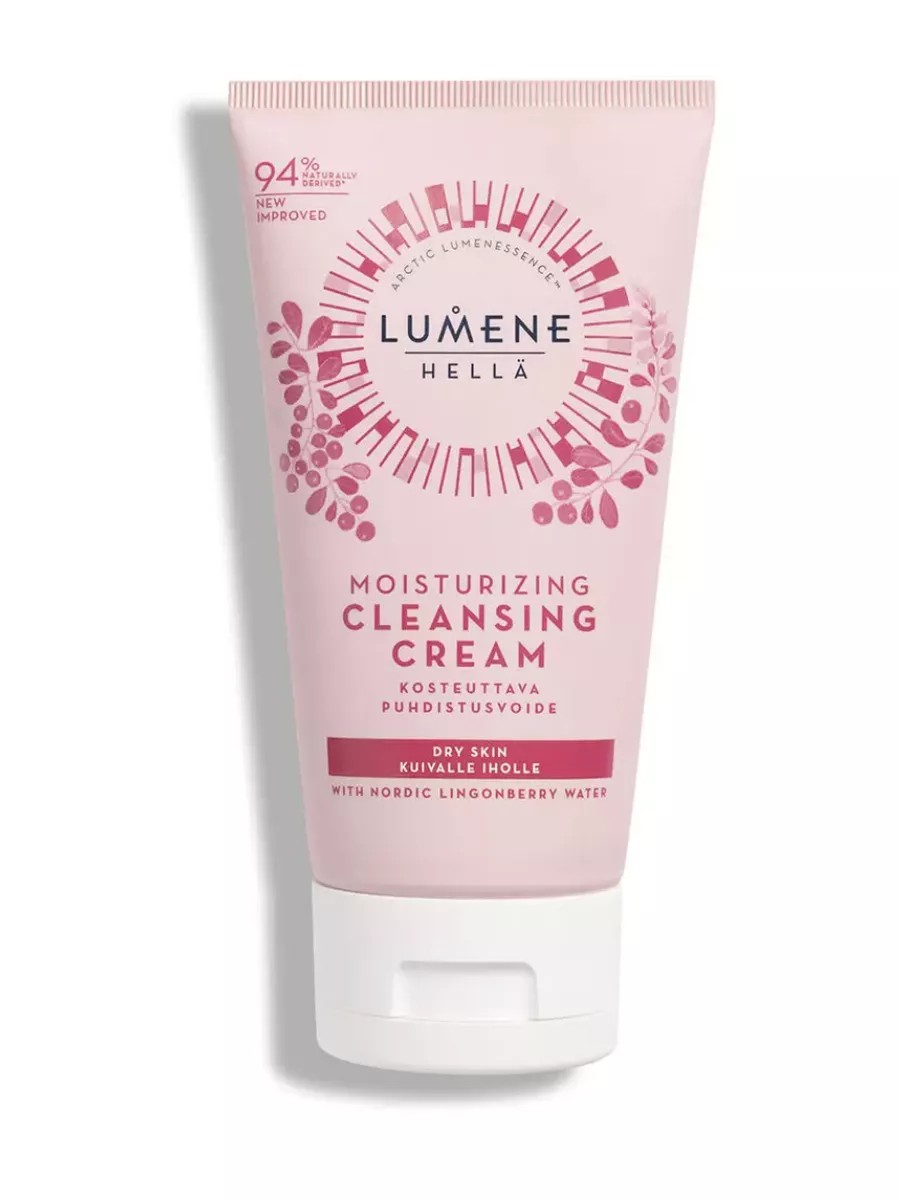 Lumene Hella Moisturizing Cleansing Cream, 150 ml. This rich, moisturizing cleansing cream, formulated with northern lingonberry water and arctic spring water, gently yet effectively removes makeup and impurities, leaving a soft, hydrated feeling. The nourishing, creamy texture provides added comfort and is suitable for normal to dry skin. Directions: Apply to dry skin using circular motions, then rinse with water.