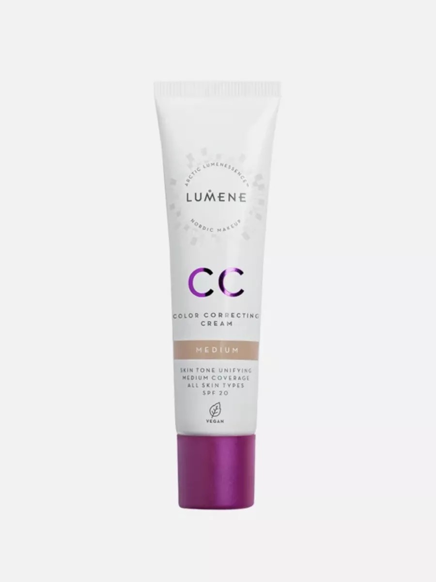 CC крем Абсолютное совершенство SPF 20+, 30 мл. - невесомая тональная основа с текстурой флюида и средней степенью покрытия - 3 из 5, которая маскирует покраснения, выравнивает тон кожи и придает ей естественное сияние. Формула, усиленная северной брусникой и арктической родниковой водой, легко распределяется и маскирует покраснения и пигментацию. Клинические исследования показали, что увлажняющий эффект продукта длится более 8 часов. SPF 20 защищает кожу от вредного воздействия ультрафиолетовых лучей. СС крем подходит для всех типов кожи. Тоналка Lumene – универсальное средство для лица, включающее в себя свойства увлажняющего тонального крема и CC-крема. Представленный в пяти оттенках – Ultra Light (ультра лайт), Light (лайт), Fair (фэйр), Medium (медиум) и Tan (тан) – этот тональный крем идеально подходит для всех типов кожи. Его легкая текстура и веганский состав делают его отличным выбором для тех, кто ценит натуральные ингредиенты и естественное покрытие. Lumene CC крем обеспечивает равномерное покрытие и выравнивает тон кожи, обеспечивая ей сияющий и здоровый вид. Этот тональник также может использоваться как тональная основа или сс крем для лица, обеспечивая надежное покрытие и увлажнение.
