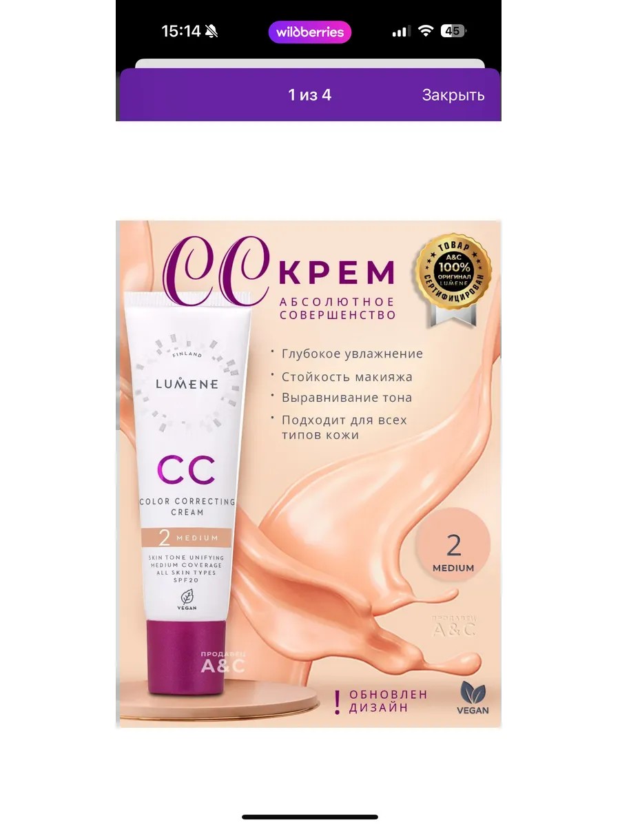 Это помогает предотвратить негативное воздействие солнечного излучения на кожу, поддерживая ее здоровье. Lumene сс крем также является веганским продуктом, не содержит ингредиентов животного происхождения и не тестируется на животных.