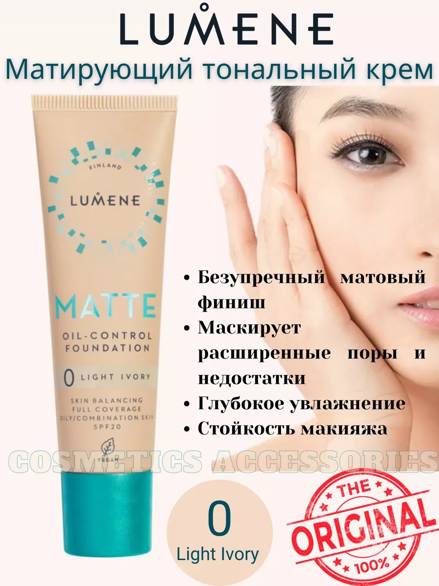 Продукт 100% оригинал. Матирующий тональный крем Lumene matte не содержит масел, полностью маскирует несовершенства и убирает жирный блеск. Кожа выглядит свежей и гладкой на протяжение всего дня. Мельчайшие пудровые пигменты и матирующие компоненты делают данный тональный крем невероятно комфортным для обладателей нормальной и комбинированной кожи. Экстракт семян арктической морошки питает кожу и будто подсвечивает ее изнутри. Без парабенов.