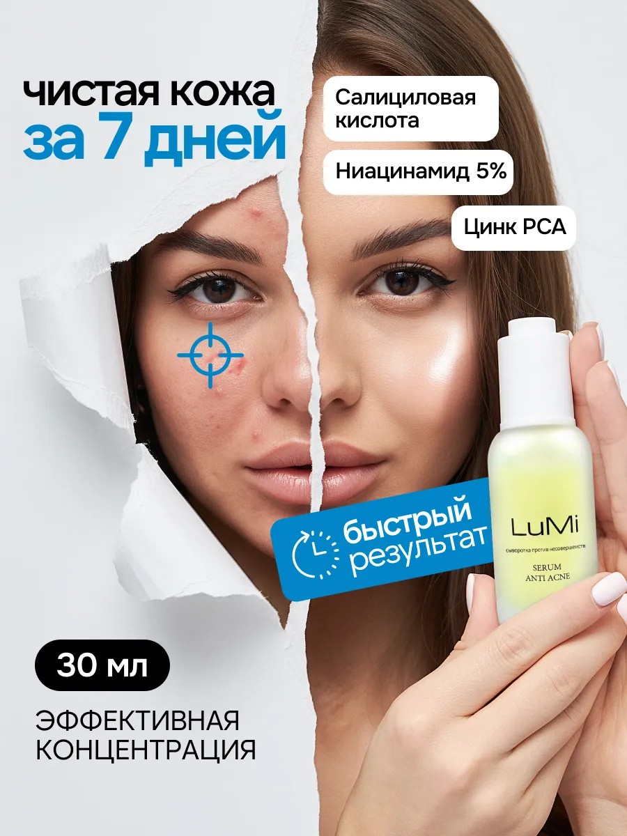 Сыворотка для лица от прыщей– это мощное ухаживающее средство для лица Lumi, способное эффективно решать различные проблемы эпидермиса.