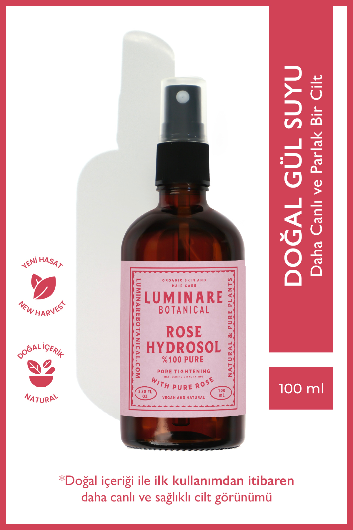 Ürün içerigi:100 saf ve katkisiz gül suyu. Kimyasal koruyucular, parabenler veya yapay kokular içermez. Cildiniz için en dogal ve saf bakim!