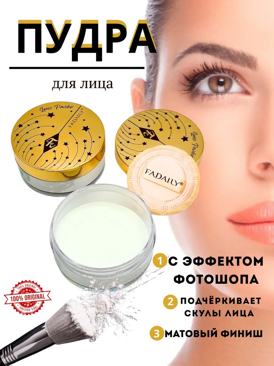 С помощью пудры FADAILY вы сможете легко создать ровное покрытие, которое идеально подходит для всех типов кожи, включая жирную, сухую и комбинированную. Ее уникальная минеральная формула бережно заботится о вашей коже, не вызывая раздражений и при этом обеспечивая превосходную стойкость макияжа. Пудра имеет легкую, шелковистую текстуру, которая не утяжеляет кожу и не создает эффекта маски.В комплекте с пудрой идет спонж для легкого и удобного нанесения, а также зеркало, что делает использование еще более комфортным и практичным. Вы можете легко поправить макияж в любое время и в любом месте, ведь пудра компактна и удобно помещается в сумочке.Эта рассыпчатая пудра станет отличным подарком на 8 марта или на день рождения для всех, кто ценит высококачественные косметические средства. Она идеально подходит для создания как легкого дневного, так и более яркого вечернего макияжа. FADAILY – это сочетание легкости, надежности и высокого качества, которое удовлетворит даже самых требовательных пользователей.С помощью пудры FADAILY вы будете чувствовать себя уверенно и выглядеть безупречно на протяжении всего дня. Она скрывает даже самые мелкие недостатки кожи, обеспечивая матовое покрытие, которое не тускнеет и не скатывается. Независимо от того, какой у вас тип кожи или условия, эта пудра поможет вам всегда выглядеть свежо и естественно.подарок на 8 марта