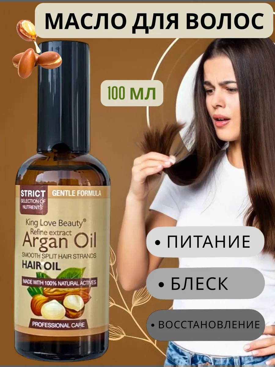King Love Beauty Argan Oil, a nourishing hair oil with argan oil, is designed for intensive care of damaged, dry, and brittle hair.