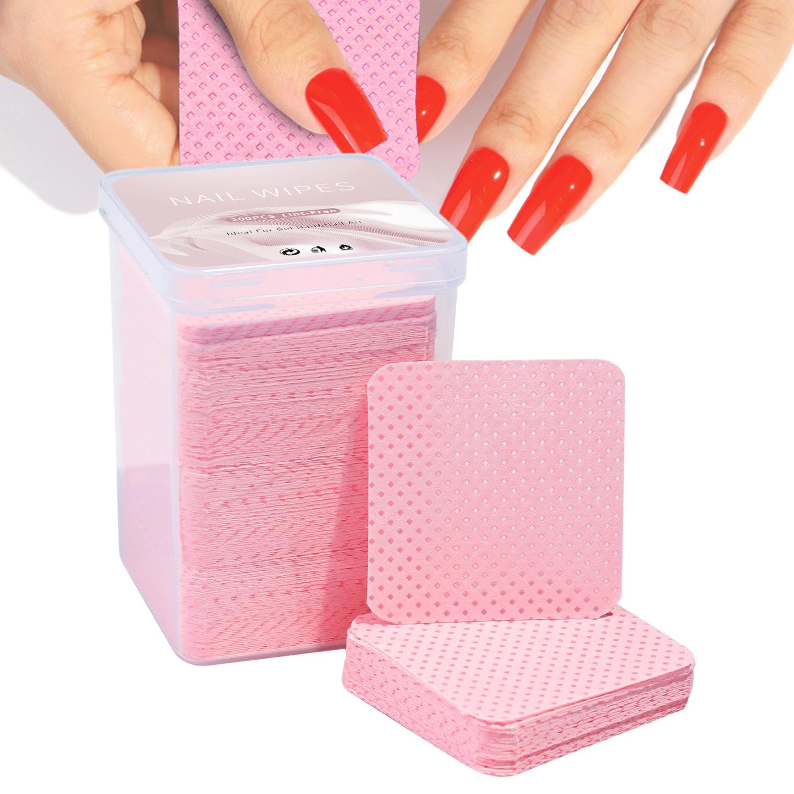 Design: Our towels are designed for a hassle-free travel experience. Take them outdoors, to the gym, or on vacation and enjoy the comfort. They come in large packs, making them easy and convenient to use: your nails stay clean, even while traveling. Practical: Revolutionize your facial cleansing routine with these towels. They effectively remove dirt, makeup, and excess oil and are also perfect for professional manicures and personal use. You can also gently remove artificial nails without causing any damage. Nail prep tool: Remove annoying dirt and oil stains from your nails before applying polish or glue. The soft, long towels are not easily deformed by friction or moisture, making them an integral part of your nail care routine. Soft and gentle: These lint-free towels made of fleece are super soft and gentle on nails and skin. They have high water absorption and won't leave residue or damage your polish. Hygienic nail care: With these pink sanitary napkins, remove eyelash stickers or remaining nail residue quickly and easily. Wrap nails for a clean finish. Contains 200 napkins measuring 5 x 5 cm per pack.