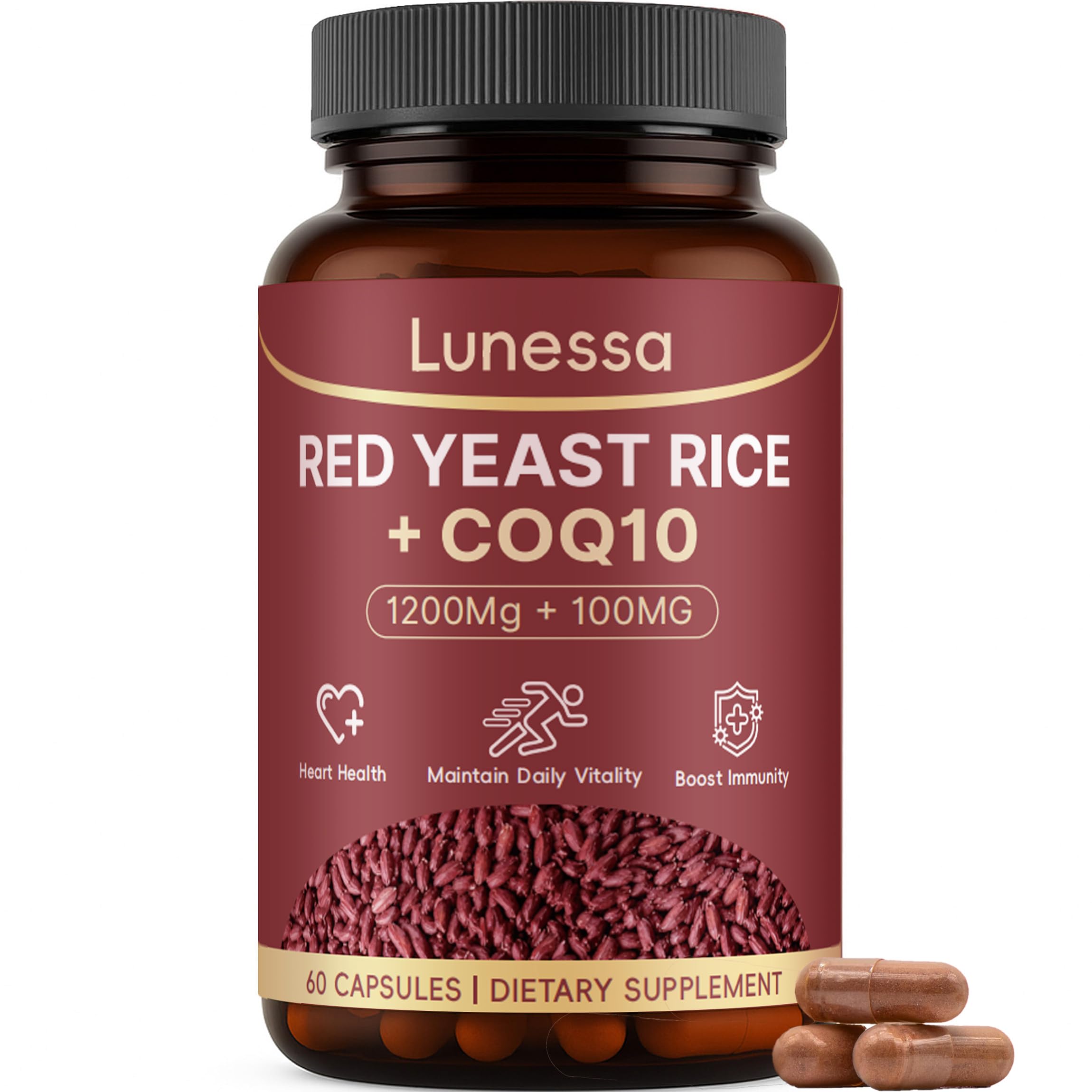 LUNESSA Red Yeast Rice 1200mg Red Yeast Rice Supplement with 100mg COQ10 Support Healthy Heart & Cholesterol for Men & Women High Absorption Non-GMO Vegan 60 Capsules