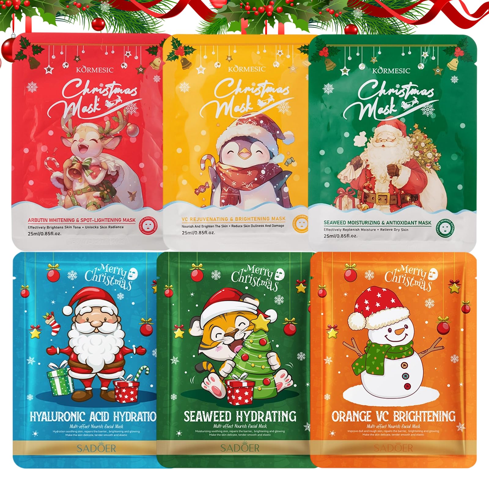LureLuxe 6 Pcs Christmas Face Mask Moisturizing Daily Care Masks Festive Skin Care Mask Soothing Moisturizing Set for Different Skin Needs