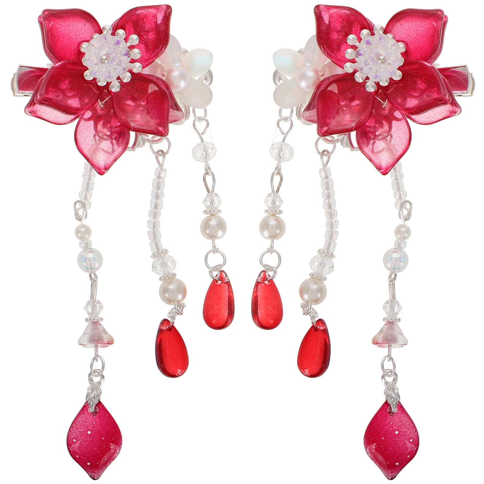 Lurrose 1 Pair Chinese Hair Clip Tassel Flower Hair Clips Hair Barrettes Sweet Hair Pins Hanfu Hair Accessories For Girl Teens Kids Toddlers