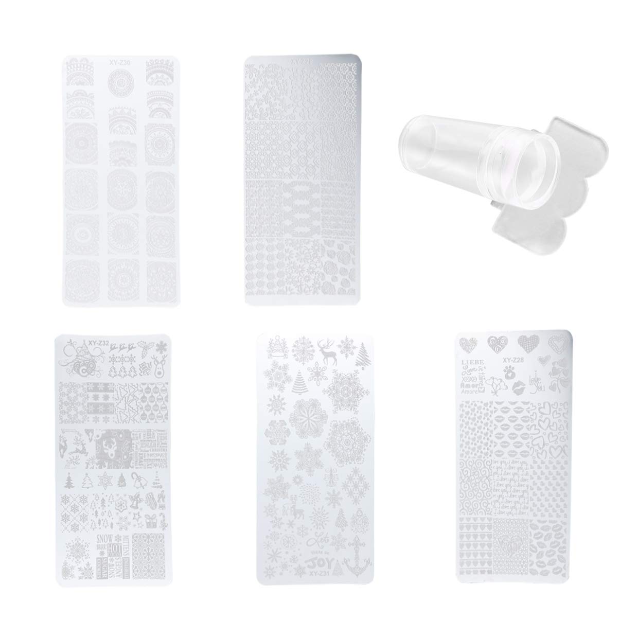 Inklusive 5 Stempelplatten, 1 Stempel und 1 Schaber. Einfache Anwendung für Anfänger und erfahrene Nagelkünstler. Erstellen Sie eine perfekte Nagelkunst und genießen Sie Ihre Partyzeit. Genießen Sie die Nagelkunst einfach zu Hause oder machen Sie einzigartige und schöne Kunstnägel zusammen mit Ihren Freunden. Es lässt Ihre Nägel elegant und besonders aussehen.
