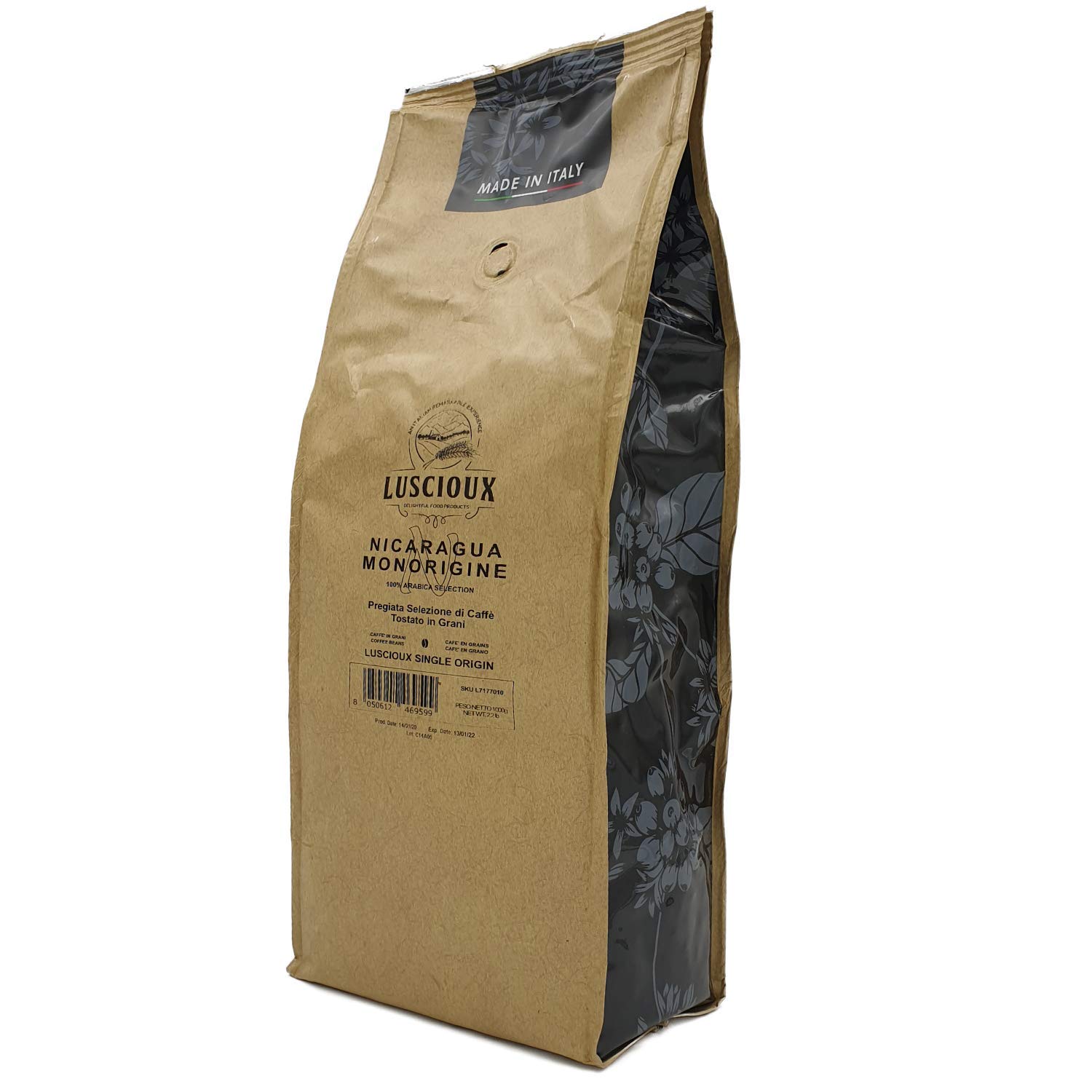 Luscioux Monorigine Whole Bean Coffee - Puro, for those with discerning tastes. There are times when even the best coffee blend isn't enough. The taste buds crave something different, something special, something truly personal. At that moment, coffee is no longer just coffee. It's a sensory experience. These are the perfect moments to choose Luscioux Monorigine Nicaragua Strictly High Grown Cavallino: The Nicaragua SHG Cavallino coffee is a washed, full-bodied Arabica grown at exceptionally high altitudes (between 1,500 and 2,000 meters) in the area between Las Manos and La Laguna, in the Dipilto municipality of Nueva Segvia. The coffee is grown in shade-grown plantations and harvested between December and March. Nicaragua produces exclusively Arabica coffee, which thrives on the fertile volcanic soils that contribute to making this coffee unique and special. In the cup, the coffee has a good body and a pleasant base. Incredible aromatic elements with sweet, pulpy fruits, citrus, spices, and chocolate, medium acidity, and a pleg aftertaste. Nicaragua SHG Cavallino promises a full-bodied espresso with a very appreciable acidity. Its fragrances and aromas come from sweet, pulpy fruits and spices, enriched with a note of cocoa. INGREDIENTS Coffee SAFETY WARNING Store in a cool, dry place. Caution: This product may contain traces of one or more common allergens (egg, crustaceans, gluten, soy, peanuts). See moreLuscioux Café Monorigine en Grani Nicaragua - 100 Arabica - Emballage de 1 kg Un café d'une grande épaisseur unique et spéciale.DESCRIPTION DU PRODUIT DESCRIPTION DU PRODUIT Café en grains Monorigine de Luscioux - Puro, pour intentionneurs. Il y a des moments où même le meilleur mélange de café ne suffit pas. Le goût demande quelque chose de différent, de spécial, vraiment personnel. À ce moment, le café n'est plus un café. C'est une expérience des sens. Ce sont les bons moments pour choisir les Monorigine de luscioux Café en grains Monorigine Nicaragua Strictly High Grown Cavallino : d'une grande épaisseur Le café Nicaragua SHG Cavallino est un arabique lavé de grande épaisseur cultivé à des altitudes particulièrement élevées (entre 1500 et 2 000 m) dans la zone entre Las Manos et La Laguna, dans le municipio Dipilto en Nueva Segvia. Le café grandit en plantations d'ombre et est récolté dans les mois de décembre à mars. Le Nicaragua produit exclusivement du café de l'espèce arabe, qui grandit sur les fertili terrains d'origine volcanique qui contribuent à rendre ce café unique et spécial. En tasse, le café a une bonne corposité et une base amable. Des éléments aromatiques incroyables avec des fruits doux en pulpe, agrumes, épices et chocolat, acidité moyenne et agréable rétrogue. Le Nicaragua SHG Cavallino promet un Espresso corps et avec une acidité très appréciable. Ses parfums et arômes proviennent des fruits doux en pulpe aux épices et s'enrichissent avec une note de cacao. INGRÉDIENTS Café AVERTISSEMENT DE SÉCURITÉ Conserver dans un endroit frais et sec. Attention : ce produit peut contenir des traces d'un ou plusieurs allergènes courants (œuf, crustacés, gluten, soja, cacahuètes). Voir plus