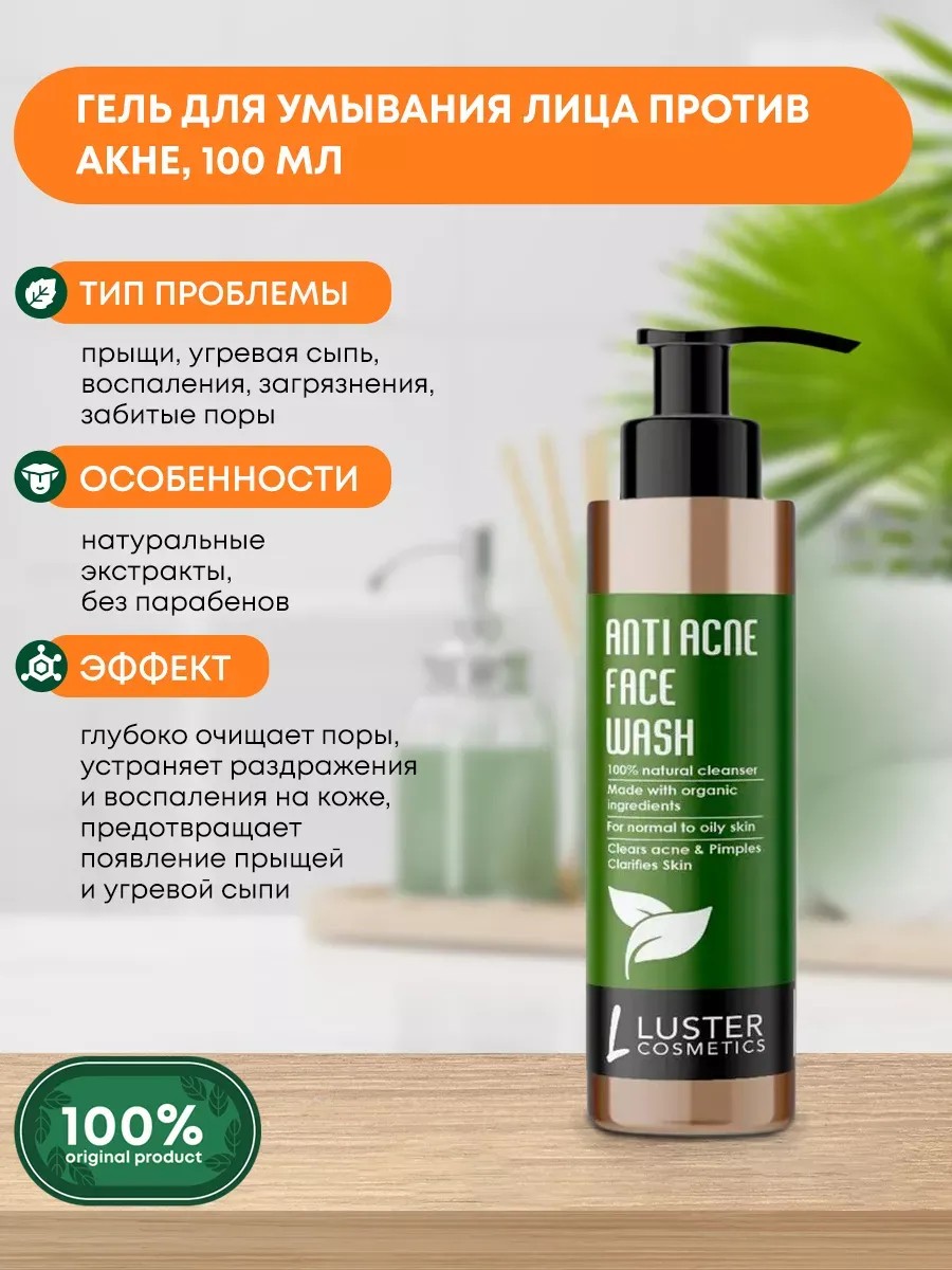 Гель для умывания, подходит для всех типов кожи. Средство борется с акне, устраняет раздражения и воспаления на коже. Входящие в состав лакрица и чайное дерево оказывают противовоспалительное действие, предупреждая появление прыщей и угревой сыпи. Масло дерева ним способствует быстрому заживлению микротрещин и ранок. При регулярном применении гель придает коже мягкость, упругость и сияние.
