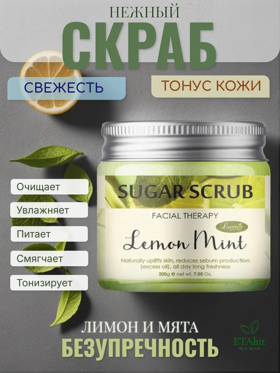 Luster Сахарный скраб для лица с маслами цедры лимона и мяты, 200мл