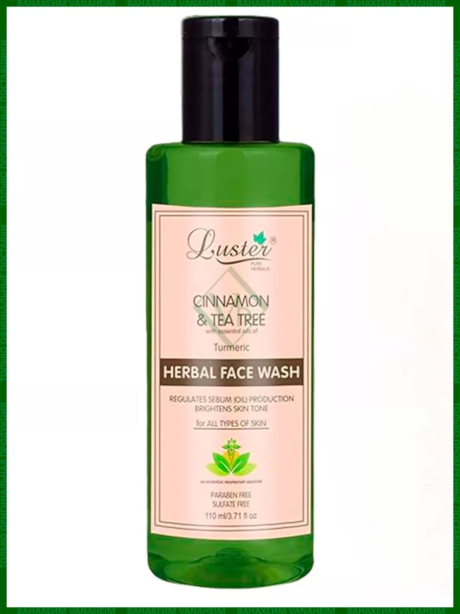 Luster Cinnamon & Tea Tree Herbal Face Wash 110ml - A face wash with natural ingredients. Enriched with turmeric, cinnamon, and tea tree oils, it deeply cleanses pores, gently exfoliates dead skin cells, and removes excess oil and makeup. Leaves skin feeling fresh, toned, and able to breathe.
