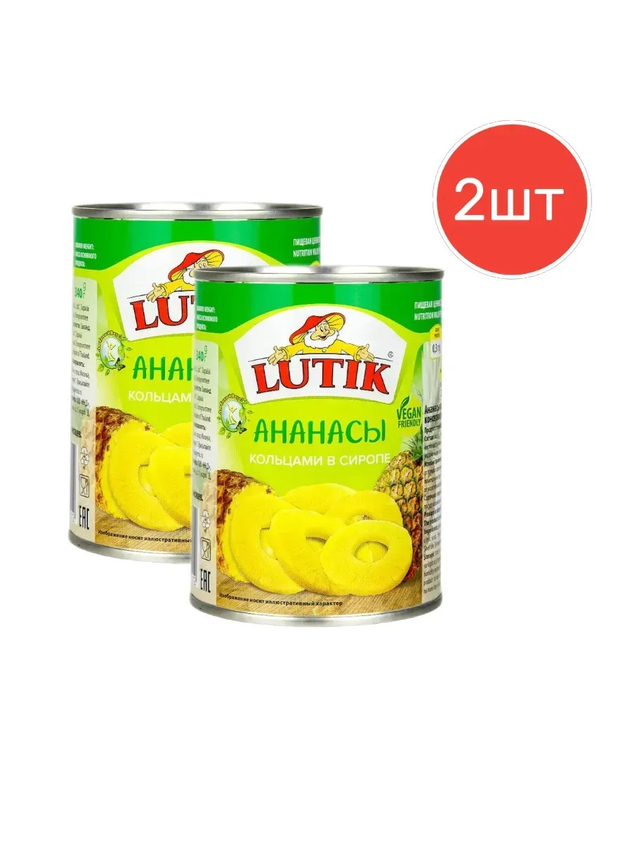 LUTIK Ананас кольцами в сиропе Lutik 560 г 2 шт