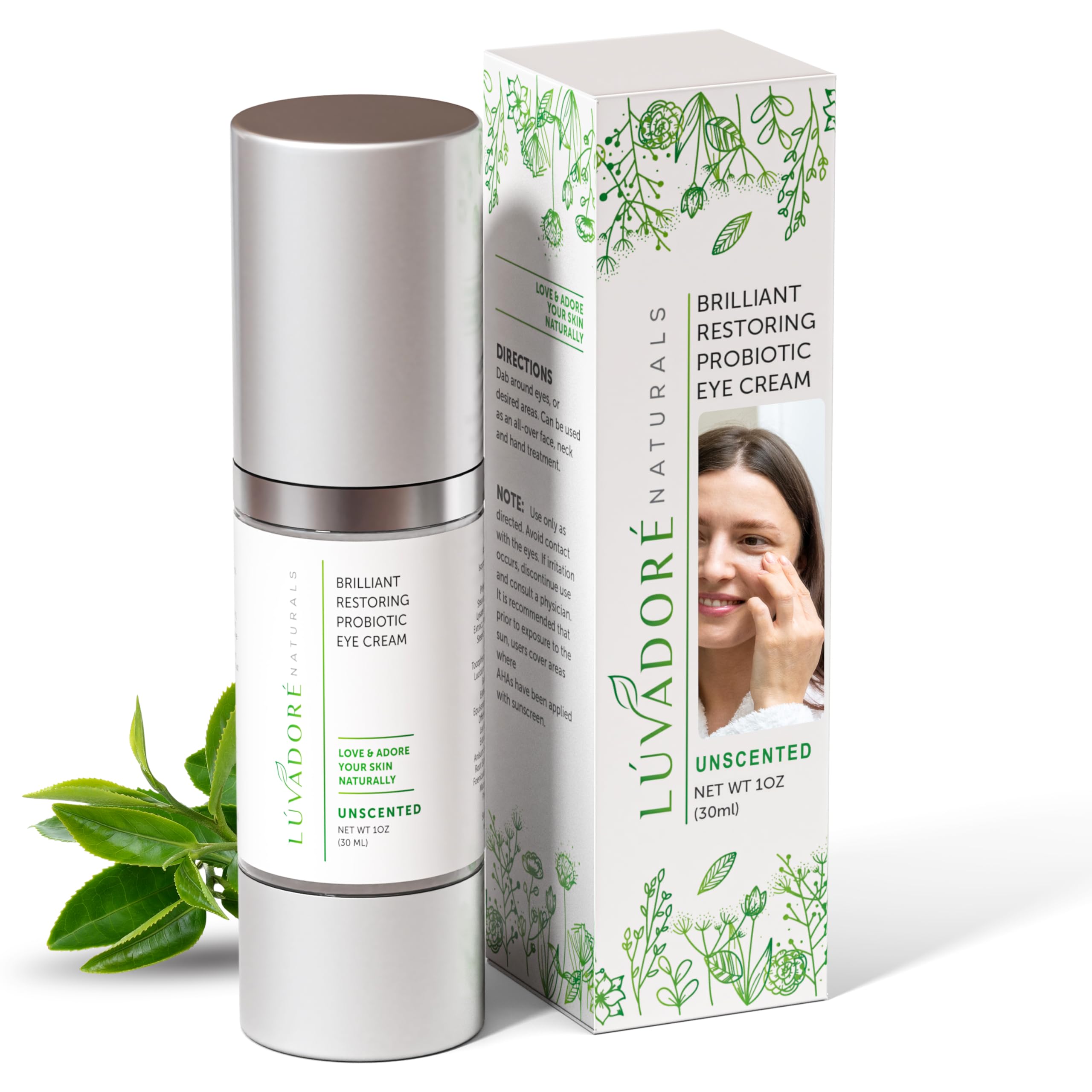 Luvadore Naturals Brilliant Restoring Probiotic Eye Cream Under Eye Cream with Caffeine Green Tea Hyaluronic Acid Botanical Ingredients Facial Serum for Puffy Eyes Dark Circles Wrinkles