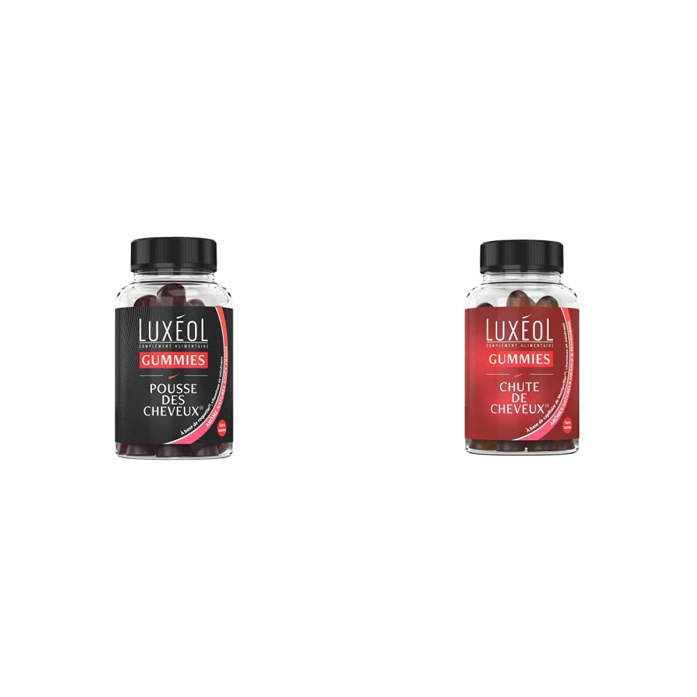 Luxéol – Hair Growth Gummies (1) – Sugar-Free – Natural Strawberry Flavor – Food Supplement – ??60 Gummies – 150 g. As a hair specialist, Luxéol offers a complete range of food supplements and cosmetics to help you achieve healthy hair. The Luxéol brand, an expert in its core business, is recognized for the reliability of its products and their conclusive results. Composed of high-quality ingredients in accordance with regulations, Luxéol hair products are meticulously researched, developed, and manufactured in specialized laboratories to provide the best solutions to the hair concerns of both women and men. Want to grow your hair (1)? Let yourself be tempted by Hair Growth Gummies and their strawberry flavor, a new Luxéol product! Food supplement based on rocquerre, zinc, vitamin B6, copper, selenium, and vitamin B8. (1) Rocket helps stimulate the hair bulb, promoting hair growth. (2) Zinc, selenium, and vitamin B8 contribute to the maintenance of normal hair. Copper contributes to normal hair pigmentation. Vitamin B6 contributes to normal cysteine ??synthesis. Directions for use: Take two gummies daily. Precautions: Not recommended for children 10 years and younger. Pregnant or breastfeeding women should consult a healthcare professional. Excessive consumption may have a laxative effect. Food supplements should be used as part of a healthy lifestyle and not as a substitute for a varied and balanced diet. Keep out of reach of young children. Do not exceed the recommended daily dose. Store away from moisture, heat, and light. Ingredients: Bulking agent: maltitol rocket (Eruca vesicaria) aerial part dry extract Gelling agent: pectin acidifier: sodium citrate acidifier: citric acid natural flavoring carrot and blackcurrant concentrate zinc citrate sodium selenite copper citrate pyridoxine hydrochloride (Vitamin B6) D-biotin (Biotin) vegetable oils (coconut and rapeseed) glazing agent: carnauba wax antioxidant: alpha-tocopherol. Rocket: origin Europe. Nutritional information (Amount per 2 gummies): Rocket aerial parts extract: 100 mg Zinc: 5 mg (50 of the NRV) Vitamin B6: 0.7 mg (50 of the NRV) Copper: 0.5 mg (50 of the NRV) Selenium: 27.5 micrograms (50 of the NRV) Biotin (Vitamin B8): 25 micrograms (50 of the NRV). Reference Intakes (RI): Net weight: 150g Luxéol – Hair Loss Gummies (1) – Sugar-Free – Natural Orange Mandarin Flavors – Food Supplement – ??60 Gummies – 150g As a hair specialist, Luxéol offers a complete range of food supplements and cosmetics to help you regain healthy hair. The Luxéol brand, an expert in its core business, is recognized for the reliability of its products and their conclusive results. Composed of high-quality ingredients in accordance with regulations, Luxéol hair products are meticulously studied, developed, and manufactured in specialized laboratories to provide the best solutions to the hair problems of women and men. Want to take action against hair loss (1)? Let yourself be seduced by Hair Loss Gummies and their orange-mandarin flavor, a new Luxéol product! Food supplement based on maidenhair fern, zinc, vitamin B6, selenium vitamin B8. (1) Maidenhair fern helps prevent hair loss. (2) Zinc, selenium, and vitamin B8 contribute to the maintenance of normal hair. (3) Vitamin B6 contributes to the normal synthesis of cysteine. Directions for use: Take two gummies daily. Precautions: Not recommended for children 10 years and younger. Not recommended for pregnant or breastfeeding women and people taking antidiabetic medication. Excessive consumption may have a laxative effect. Food supplements should be used as part of a healthy lifestyle and not as a substitute for a varied and balanced diet. Keep out of reach of young children. Do not exceed the recommended daily dose. Store away from moisture, heat, and light. Ingredients: Bulking agent: maltitol Montpellier maidenhair fern (Adiantum capillus-veneris) aerial part dry extract gelling agent: pectin acidifier: citric acid acidifier: sodium citrate radish and safflower concentrate natural orange flavor natural mandarin flavor zinc citrate sodium selenite pyridoxine hydrochloride (Vitamin B6) D-biotin (Biotin) vegetable oils (coconut and rapeseed) glazing agent: carnauba wax antioxidant: alpha-tocopherol. Montpellier maidenhair fern: origin outside Europe. Nutritional information (Amount per 2 gummies): Montpellier maidenhair fern aerial parts extract: 150 mg Zinc: 5 mg (50 of the NRV) Vitamin B6: 0.7 mg (50 of the NRV) Selenium: 27.5 µg (50 of the NRV) Biotin (Vitamin B8): 25 mcg (50 of the RI). RI: Reference Intake. Net weight: 150 gProduct 2: SUGAR-FREE: These gummies contain a blend of plants, minerals, and vitamins for your hair. A formula to help maintain normal hair(2) and normal cysteine ??synthesis(3)! Product 2: ACTION ON HAIR LOSS: Is your hair falling out(1)? Choose Luxéol Hair Loss gummies, which help prevent hair loss thanks to maidenhair fern. Product 1: MADE IN FRANCE: The result of years of research and development, this product is carefully designed and manufactured in France in a specialized laboratory. A practical and tasty food supplement! Product 1: NATURAL STRAWBERRY FLAVOR: Fall for these delicious gummies. Their strawberry flavor will add a touch of sweetness to your day! Product 1: SUGAR-FREE: These gummies are sugar-free and made with arugula and a blend of minerals and vitamins selected for their properties. A formula to help you achieve your goals! Product 1: HELPING HAND: With their composition based on rocket, vitamins and minerals, these gummies help to stimulate the hair bulb and promote hair growth(1) to give your hair a boost.Luxéol – Gummies Pousse des Cheveux (1) – Sans Sucres – Arôme Naturel Goût Fraise – Complément Alimentaire – 60 Gummies – 150 g Spécialiste du cheveu, Luxéol propose une gamme complète de compléments alimentaires et cosmétiques pour vous aider à retrouver des cheveux en bonne santé. La marque Lux