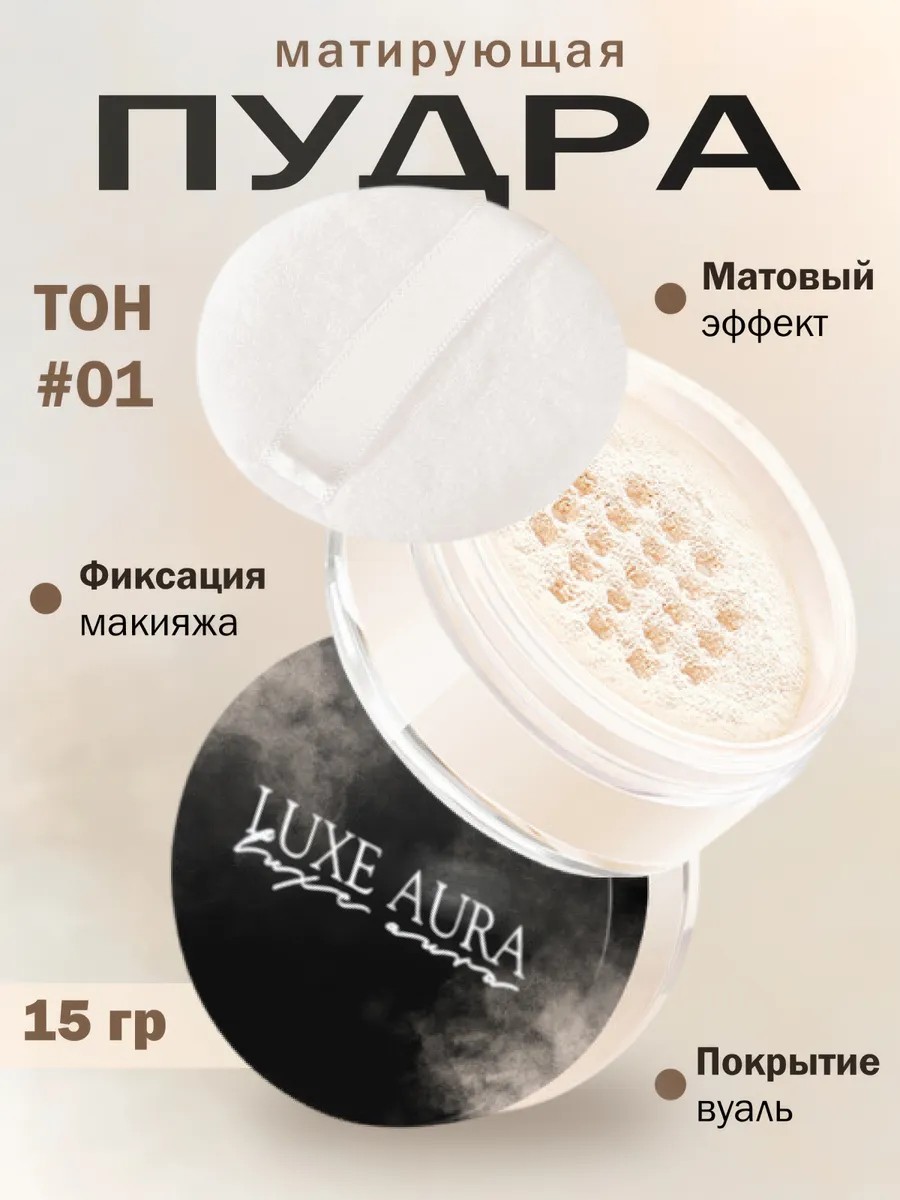Пудра фиксирующая Luxe Aura Powder тон 1 создана для идеального макияжа! Фиксация и стойкость: Специальные абсорбирующие компоненты в составе пудры поглощают себум, предотвращая появление жирного блеска, фиксируют макияж и продлевают его стойкость. Прозрачная матирующая пудра распределяется тонким слоем и не выбеливает лицо, что делает её абсолютно универсальной, пудра подходит для загорелой кожи летом и для светлой кожи зимой, сочетается с любым оттенком тонального крема, подходит для любого под тона кожи и любого цветотипа внешности. Сферические частицы HD-пудры, словно фотошоп, визуально сглаживают рельеф кожи, делают мелкие несовершенства менее заметными и придают лицу дорогой эффект матовой ухоженной кожи без утяжеления и перепудренности. Благодаря натуральному тапиоковому крахмалу, рассыпчатая пудра удерживает влагу, не пересушивая кожу. Наслаждайтесь безупречным макияжем в любое время с закрывающимся дозатором, который удобно брать с собой. Попробуйте минеральную пудру и почувствуйте себя настоящей звездой! Пудра матирующая - это идеальный фиксатор для вашего макияжа. Она матирует лицо, придавая ему натуральный и здоровый вид. Бесцветная текстура пудры убирает жирный блеск и помогает закрепить макияж, обеспечивая его стойкость в течение всего дня. Это идеальное решение для бейкинга - техники макияжа, которая помогает "запечь" консилер и другие кремовые продукты, делая ваш макияж более стойким. Белая минеральная матирующая пудра для лица Luxe Aura - это идеальный выбор для тех, кто ищет натуральное покрытие. Без парабенов и отдушек. С PRO HD Powder ваш макияж будет выглядеть безупречно в течение всего дня!