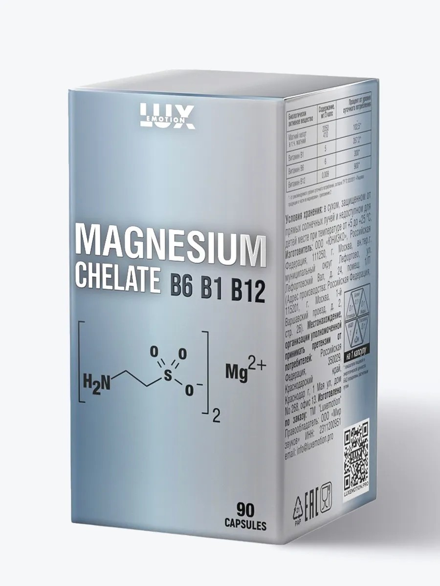 MAGNESIUM Магний Хелат 90 капсул B6, B1, B12