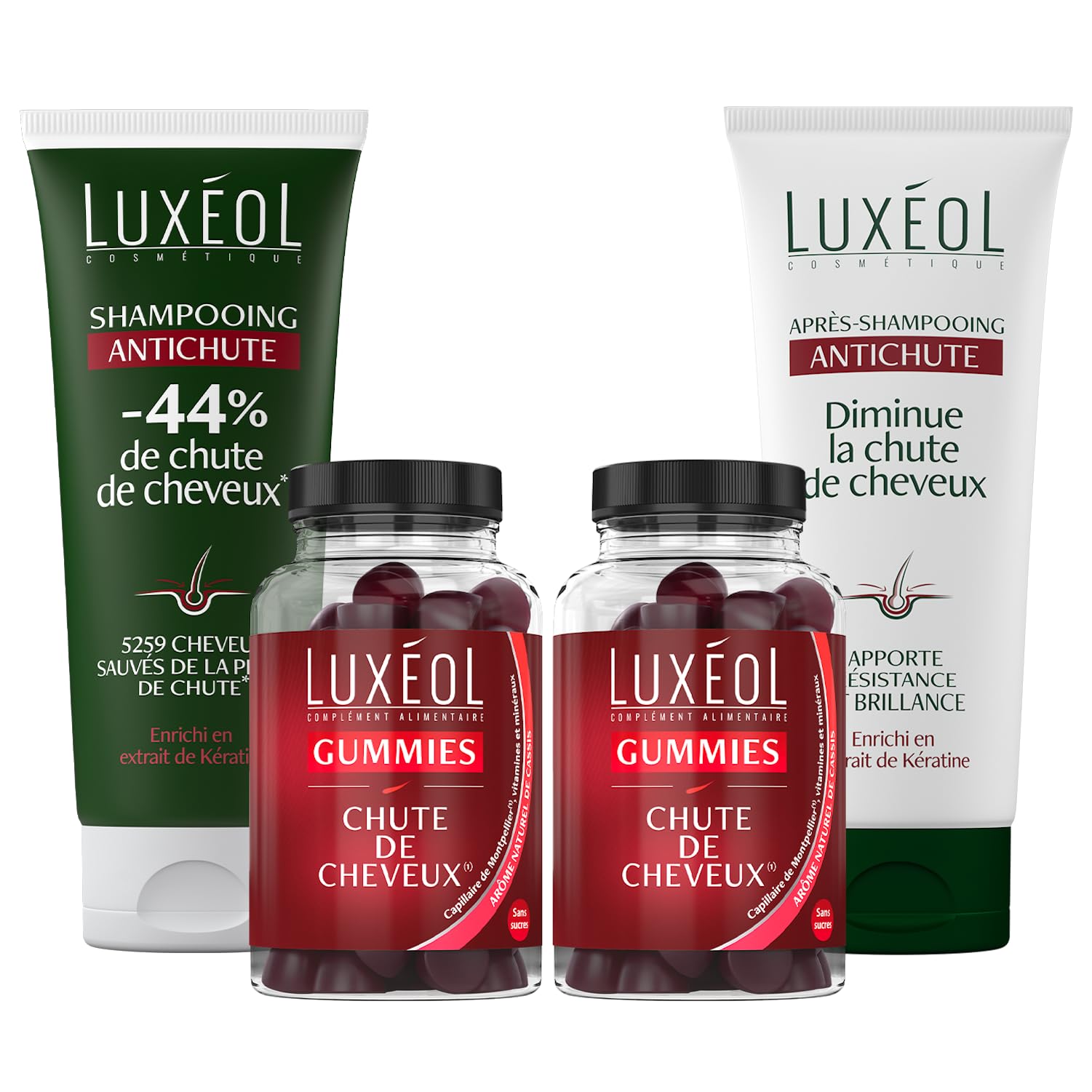 : If you are not satisfied with a product you ordered from .fr, or if it is defective or damaged, you can return it to us within [number] days of delivery, and we will refund or replace the item in full. Shampoo Ingredients: Aqua, Cocamidopropyl Betaine, Sodium Lauroyl Sarcosinate, Decyl Glucoside, Glycerin, Hydrolyzed Keratin, Hydrolyzed Silk, Disodium Cocoyl Glutamate, Citric Acid, Parfum, Sodium Benzoate, Potassium Sorbate, Citronellol, Linalool. Conditioner: Aqua, Myristyl Alcohol, Hydrogenated Ethylhexyl Olivate, Oryza Sativa Starch, Cetrimonium Chloride, Ethylhexyl Palmitate, Hydrolyzed Keratin, Panthenol, Cocos Nucifera Oil, Triticum Vulgare Oil, Prunus Armeniaca Fruit Extract, Prunus Persica Fruit Extract, Pyrus Malus Fruit Extract, Hydrogenated Olive Oil Unsaponifiables, Acetum, Parfum, Decylene Glycol, Propylene Glycol, Cetearyl Alcohol, Polysorbate 80, Citric Acid, Potassium Sorbate, Sodium Benzoate, Phenoxyethanol, Citronellol, Linalool, Geraniol. Capsules for Reactive Hair Loss: Extract of the aerial parts of maidenhair fern (Adantium capillus-veneris) hydroxypropylmethylcellulose (capsule shell of vegetable origin) L-cystine L-methionine California poppy (Eschscholzia californica) aerial part powder horsetail (Equisetum arvense) aerial part powder anti-caking agent: dicalcium phosphate anti-caking agent: talc zinc citrate anti-caking agent: magnesium salts of fatty acids pyridoxine hydrochloride (vitamin B6) D-biotin (vitamin B8) sodium selenite. Plants: origin Europe and non-Europe. Quantity per 1 capsule: Montpellier maidenhair fern aerial part extract: 150 mg L-cystine: 50 mg L-methionine: 50 mg California poppy aerial part powder: 30 mg horsetail aerial part powder: 30 mg zinc: 5 mg (50 of the NRV ) vitamin B6: 0.7 mg (50 of the NRV ). Vitamin B8: 25 µg (50 of the RI ) Selenium: 11 µg (20 of the RI ). RI: Reference Intakes. Food supplement based on maidenhair fern, California poppy, horsetail, L-cystine, L-methionine, zinc, selenium, vitamin B6 and vitamin B8. Net weight: 41g 90 capsules " P.when('A').execute(function(A) { A.on('a:expander:toggle_description:toggle:collapse', function(data) { window.scroll(0, data.expander. expander[0].offsetTop-100) }) }) Directions for use: Take 1 capsule per day, to be swallowed with a large glass of water. Safety Warning: Precautions for use: Keep out of reach of children. Do not use on a damaged, sunburned, or irritated scalp. Discontinue use if an allergic reaction, irritation, or redness of the scalp occurs. Store at room temperature and away from direct sunlight. Do not use after the expiry date. Consult a healthcare professional before use if you have any medical conditions underlying conditions. Do not ingest or allow the product to come into contact with the eyes, mouth, or other mucous membranes. Use with caution if you are pregnant or breastfeeding. Do not use on other parts of the body, as this may cause unwanted hair growth. Carefully follow the instructions regarding dosage and frequency of application. Stopping treatment may cause hair regrowth to regress. Keep away from fire or flame. Consult a healthcare professional if you are using other medications, especially those applied to the scalp. Some treatments may affect blood pressure. Avoid sun exposure after applying the product. See moreMADE IN EUROPE: Our Reactive Hair Loss food supplement and Anti-Hair Loss Shampoo and Conditioner are made in Europe. The cosmetics have been dermatologically tested. CLINICALLY PROVEN RESULTS : 42 reduction in hair loss with the Anti-Hair Loss Shampoo. The Anti-Hair Loss Conditioner improves hair volume and shine after applying the product 3 times a week for 3 months. ANTI-HAIR LOSS ACTION: Enriched with keratin extract, Luxéol Anti-Hair Loss Shampoo and Conditioner help to effectively reduce hair loss while providing volume, shine, and hydration. PLANT-BASED CAPSULE: The capsules are of plant origin, resulting from a blend of plants, vitamins, and minerals. ACTIVE NATURAL INGREDIENTS: The shampoo and conditioner are formulated with over 80 naturally derived ingredients. The Anti-Hair Loss Shampoo and Conditioner are enriched with keratin extract. DIETARY SUPPLEMENT FOR REACTIVE HAIR LOSS, STRESS, FATIGUE POST-PREGNANCY: Prevents and helps prevent hair loss thanks to Maidenhair Fern(1) and helps calmly cope with the stress of an active lifestyle thanks to California Poppy(2). Furthermore, it helps regulate hormonal activity thanks to vitamin B6(3) and promotes hair growth and strengthening thanks to Horsetail(4).Description du produit Si vous n'êtes pas satisfait d'un produit que vous avez commandé auprès.fr ou si celui-ci est défectueux ou endommagé, vous pouvez nous le retourner sous de livraison, et nous vous rembourserons ou remplacerons l'intégralité de l'article. Ingrédients Shampooing : Aqua, Cocamidopropyl Betaine, Sodium Lauroyl Sarcosinate, Decyl Glucoside, Glycerin, Hydrolyzed Keratin, Hydrolyzed Silk, Disodium Cocoyl Glutamate, Citric Acid, Parfum, Sodium Benzoate, Potassium Sorbate, Citronellol, Linalool. Après-Shampooing : Aqua, Myristyl Alcohol, Hydrogenated Ethylhexyl Olivate, Oryza Sativa Starch, Cetrimonium Chloride, Ethylhexyl Palmitate, Hydrolyzed Keratin, Panthenol, Cocos Nucifera Oil, Triticum Vulgare Oil, Prunus Armeniaca Fruit Extract, Prunus Persica Fruit Extract, Pyrus Malus Fruit Extract, Hydrogenated Olive Oil Unsaponifiables, Acetum, Parfum, Decylene Glycol, Propylene Glycol, Cetearyl Alcohol, Polysorbate 80, Citric Acid, Potassium Sorbate, Sodium Benzoate, Phenoxyethanol, Citronellol, Linalool, Geraniol. Gélules Chute de Cheveux Réactionnelle : Extrait de partie aérienne de capillaire de Montpellier (Adantium capillus-veneris) hydroxypropylmethylcellulose (enveloppe de la gélule d'origines végétales) L-cystine L-méthionine poudre de partie aérienne d'eschscholtzia (Eschscholzia californica) poudre de partie aérienne de prêle des champs (Equisetum arvense) anti-agglomérant : phosphat