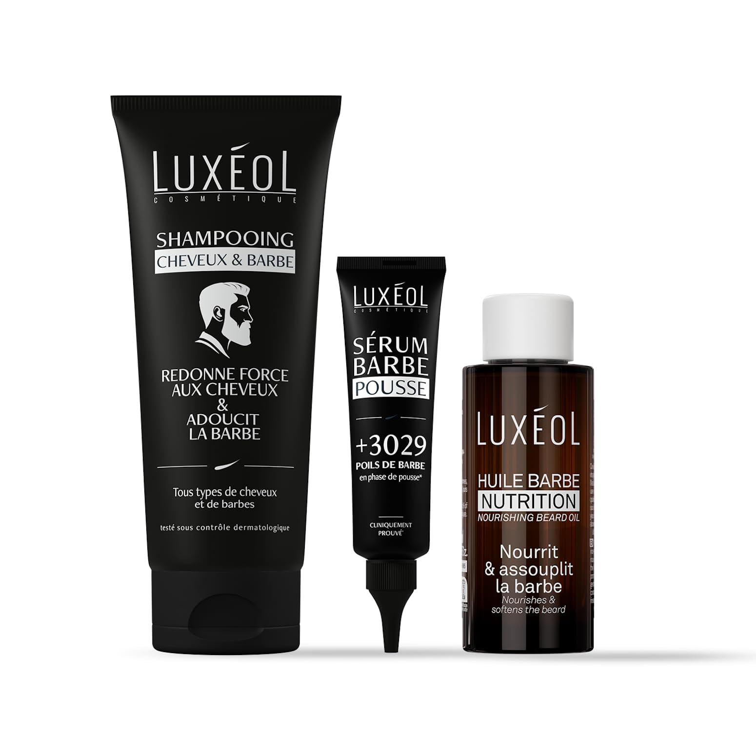 LUXEOL - Protocole Soin Barbe & Cheveux Homme - Nourrit Renforce Prot ge - Huile Barbe Nutrition 50 ml Shampoing Cheveux & Barbe 200 ml S rum Barbe Pousse 60 ml .