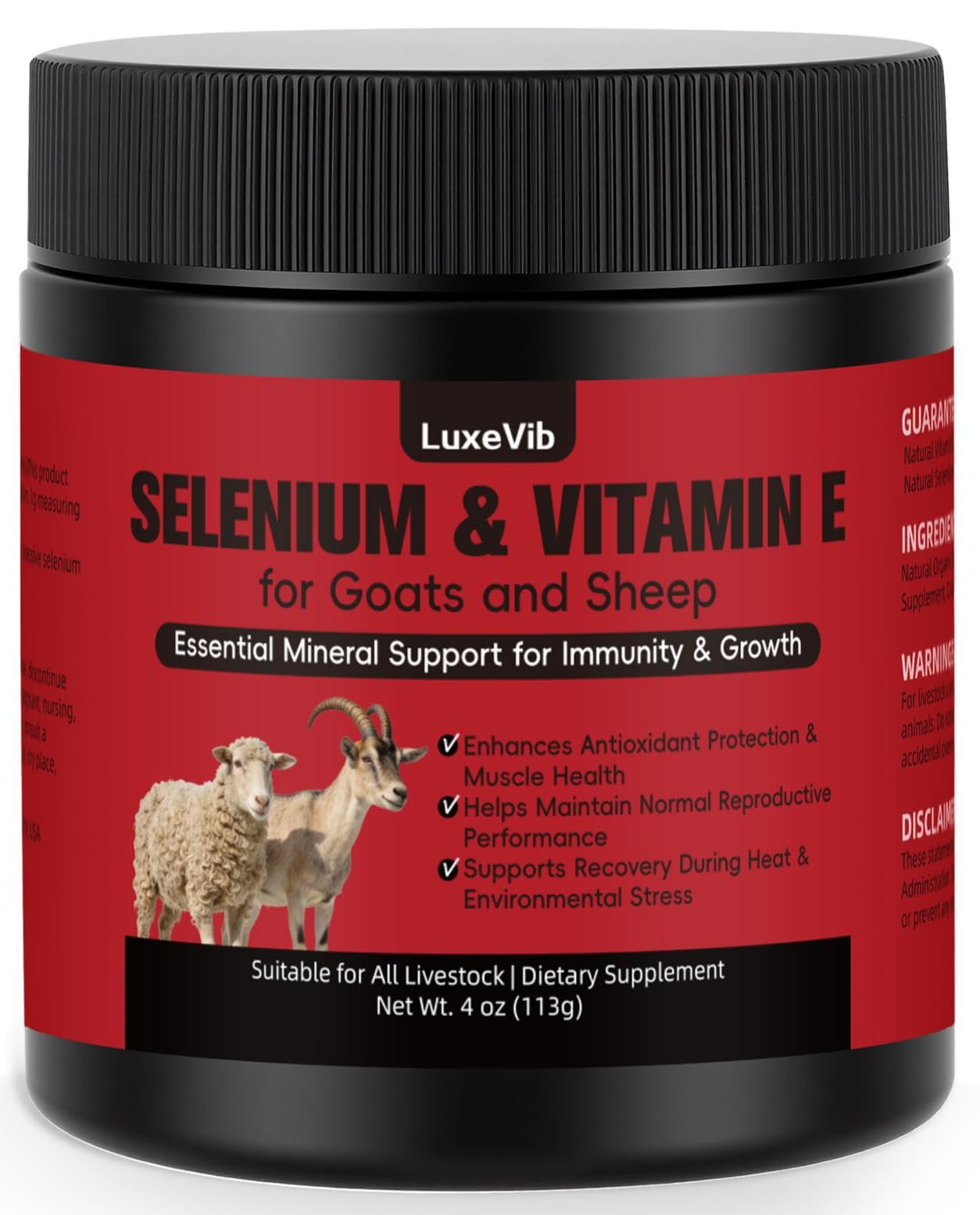 LuxeVib E and S Livestock Vitality Formula | Selenium for Goats Sheep & All Livestock | Nutrient Support Powder for Energy Balance and Mobility | Feed Mix Additive for Healthy Growth 4 oz(113 g)