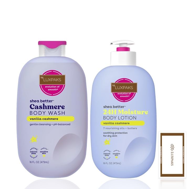 Treat your skin to the best in moisture and cleansing with the Luxpaks Wipe Bundled with eos Vanilla Cashmere Body Lotion and Body Wash. This skincare duo provides long-lasting hydration and gentle cleansing in a warm, soothing fragrance. Included in this bundle: eos Shea Better Body Lotion (473g) - Lightweight and quickly absorbed, this moisturizing lotion contains 7 nourishing oils and butters, including natural shea butter. Eos Cashmere Body Wash (453.6g): A creamy, pH-balanced gel that gently cleanses without leaving streaks, ideal for daily use on sensitive skin. Luxpaks Wipe - A soft, eco-friendly, disposable wipe - Perfect for travel, freshening up your skin, or your post-shower routine. Enriched with the signature Vanilla Cashmere fragrance, this set envelops your body in a scent of whipped vanilla, cozy caramel, and soft musk. Both formulas are vegan, dermatologically tested, and made for daily comfort and care. Whether you're shopping or looking for the perfect gift, this clean and pleasant skincare set is your first choice for soft, smooth, and beautifully scented skin.Perfect for everyday use or as a gift – ideal for self-care routines, holiday gift sets, or compression stockings – made for women who love premium skincare. Clean, vegan formulas: dermatologist recommended for sensitive skin both products are paraben-free, phthalate-free, gluten-free, and cruelty-free. Warm Vanilla Cashmere fragrance – scented with whipped vanilla, soft musk, and caramel – warm, luxurious, and long-lasting. Deep hydration gentle cleansing – creamy gel shower gel and lightweight 24-hour moisturizing lotion for soft, glowing skin. Complete skincare kit – includes an eos Shea Better Vanilla Cashmere Body Wash (473 ml), a Body Lotion (473 ml), and an eco-friendly Luxpaks cleansing cloth.Kit de soins de la peau : contient une lotion pour le corps E.O.S Vanille-Cachemire et un gel douche avec LuxPaks WipeDESCRIPTION DU PRODUIT Offrez à votre peau le meilleur de l'humidité et du nettoyage avec le pack de lingettes Luxpaks Wipe Bundled avec la lotion pour le corps et le gel douche eos Vanilla Cashmere Ce duo de soins de la peau offre une hydratation longue durée et un nettoyage en douceur dans un parfum chaud et apaisant. Inclus dans ce paquet : eos Shea Better Body Lotion (473 g) - Léger et rapidement absorbé, cette lotion hydratante contient 7 huiles nourrissantes et beurre, y compris le karité naturel. Eos Cashmere Body Wash (453,6 g) : un gel crémeux au pH équilibré qui nettoie en douceur sans laisser de traces, idéal pour une utilisation quotidienne sur les peaux sensibles. Luxpaks Wipe - Un chiffon doux et écologique jetable - Parfait pour les voyages, la fraîcheur de la peau ou votre routine après la douche. Enrichi en parfum caractéristique vanille cachemire, ce coffret enveloppe votre corps dans un parfum de vanille fouettée, de caramel douillet et de musc doux. Les deux formules sont végétaliennes, testées dermatologiquement et fabriquées pour un confort et un soin quotidiens. Que vous fassiez du shopping ou que vous recherchiez le cadeau parfait, cet ensemble de soins de la peau propre et agréable est votre premier choix pour une peau douce, lisse et magnifiquement parfumée.Parfait pour un usage quotidien ou comme cadeau - Idéal pour les routines de soins personnels, les coffrets cadeaux de vacances ou les bas de contention - Fabriqué pour les femmes qui aiment les soins de la peau de qualité supérieure. Formules propres et végétaliennes : les dermatologues sont recommandés pour les peaux sensibles, les deux produits sont sans paraben, sans phtalates, sans gluten et sans cruauté envers les animaux. Parfum chaleureux vanille-cachemire - Parfumé à la vanille fouettée, musc doux et caramel - Chaud, luxueux et durable. Hydratation en profondeur nettoyage doux - Gel douche à la texture gel crémeuse et lotion hydratante légère 24 heures pour une peau douce et éclatante. Kit complet de soins de la peau – Comprend un nettoyant pour le corps eos Shea Better Vanilla Cashmere (473 ml), une lotion pour le corps (473 ml) et un chiffon de nettoyage Luxpaks respectueux de l'environnement.