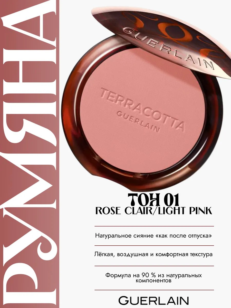 Эти румяна созданы для того, чтобы подарить коже естественное сияние и свежий, здоровый вид, словно после отдыха на солнце. Лёгкая шелковистая текстура мягко ложится на кожу, легко растушёвывается и позволяет постепенно наращивать интенсивность цвета. Нежный оттенок подчёркивает природную красоту, делает черты лица выразительными и придаёт образу живость. Покрытие остаётся стойким в течение дня, не тускнеет и не осыпается, обеспечивая комфорт и уверенность. Благодаря тонкой пудровой текстуре средство подходит для всех типов кожи и гармонично смотрится как при дневном, так и при вечернем освещении.