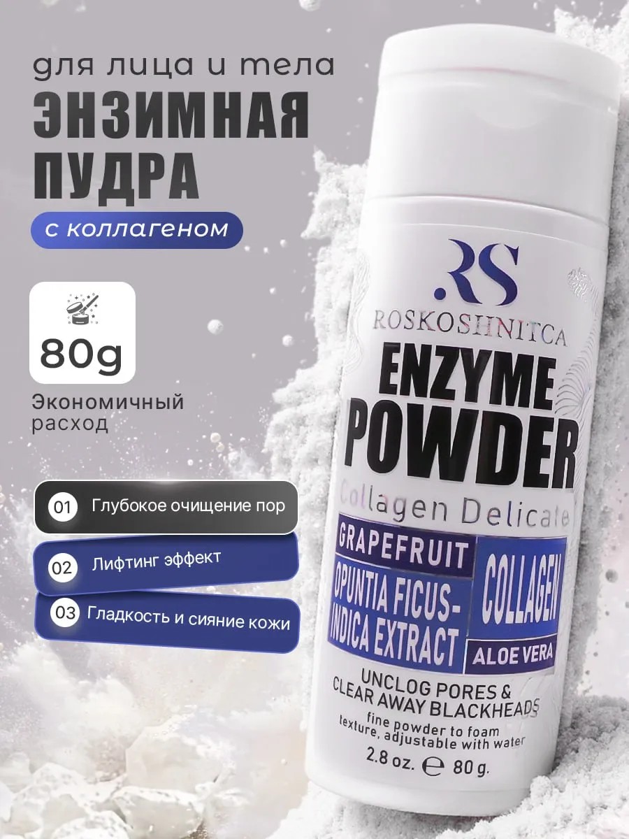 Энзимная пудра для лица и тела: уход, который преобразит вашу кожу! Это инновационное решение для тех, кто хочет сохранить молодость и красоту и свежесть кожи. Наша пудра создана на основе компонентов, которые бережно очищают и ухаживают за вашей кожей.Что такое энзимная пудра? Это порошок, который при контакте с водой превращается в нежную пенку. Она мягко очищает кожу от загрязнений, остатков макияжа, а также помогает бороться с несовершенствами кожи. Наша энзимная пудра содержит в себе компоненты, которые обеспечивают комплексный уход за кожей.Мягкая пудра для глубокого очищения кожи лица и тела: деликатно удаляет загрязнения, остатки макияжа и излишки кожного сала. Отшелушивает омертвевшие клетки, выравнивает микрорельеф и тон кожи, предотвращает появление прыщей.Благодаря своему составу, данное уходовое косметическое средство не только очищает, но и ухаживает за кожей, делая её более гладкой, мягкой и сияющей.Способ применения: После умывания, пока кожа еще влажная (можно дополнительно смочить ее водой), сухими руками нанесите небольшое количество пудры на лицо. Аккуратно массируйте лицо в течение 2 минут, затем смойте средство.